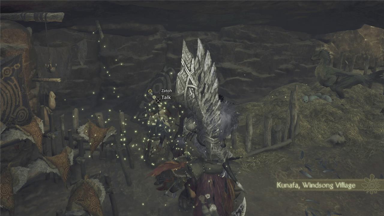To report to Zatoh in Monster Hunter Wilds during the “Beware the Gypceros” quest, head to Kunafa Windsong Village in the Windward Plains, where Zatoh resides. He frequently roams near the houses and can be found during daytime, so if you don’t see him, try resting at a camp to change the time to day and ensure the environment is set to “Plenty” for better visibility. Sometimes Zatoh may be inside buildings or temporarily absent due to weather conditions like sandstorms or time of day, so waiting nearby or resting again can help. If he is still missing, restarting the game might be necessary to make him reappear. Once found, talk to Zatoh to report your progress after hunting the Gypceros in the Windward Plains to complete the quest and receive rewards.