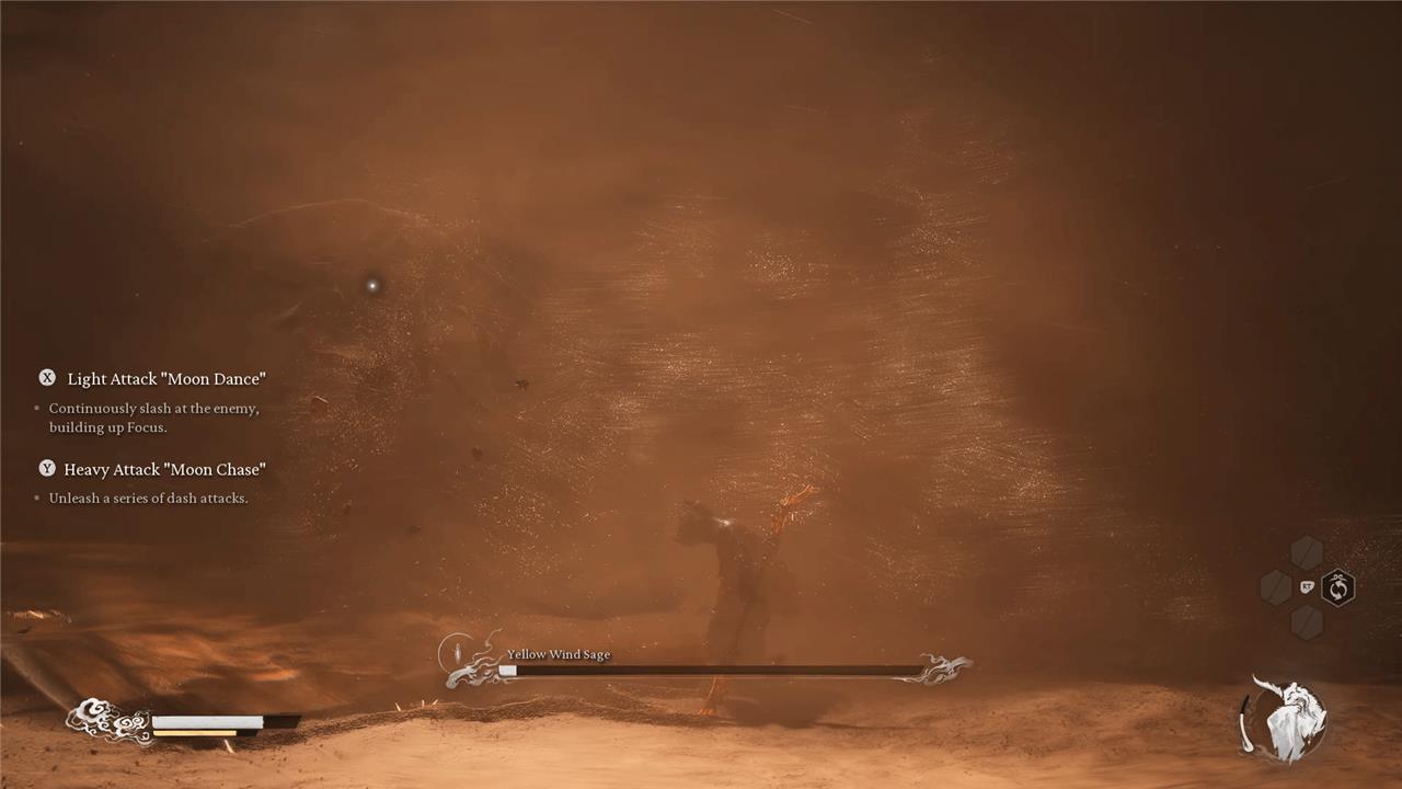 - Final Combo: Once the storm comes, the Yellow Wind Sage will primarily do a combo that involves a lot of sweeping with his stick. The bad news here is that you have very little room to dodge now and he’s much harder to see. The upside is that his glowing spins are visible through the sandstorm, so just do you best to time your dodge.