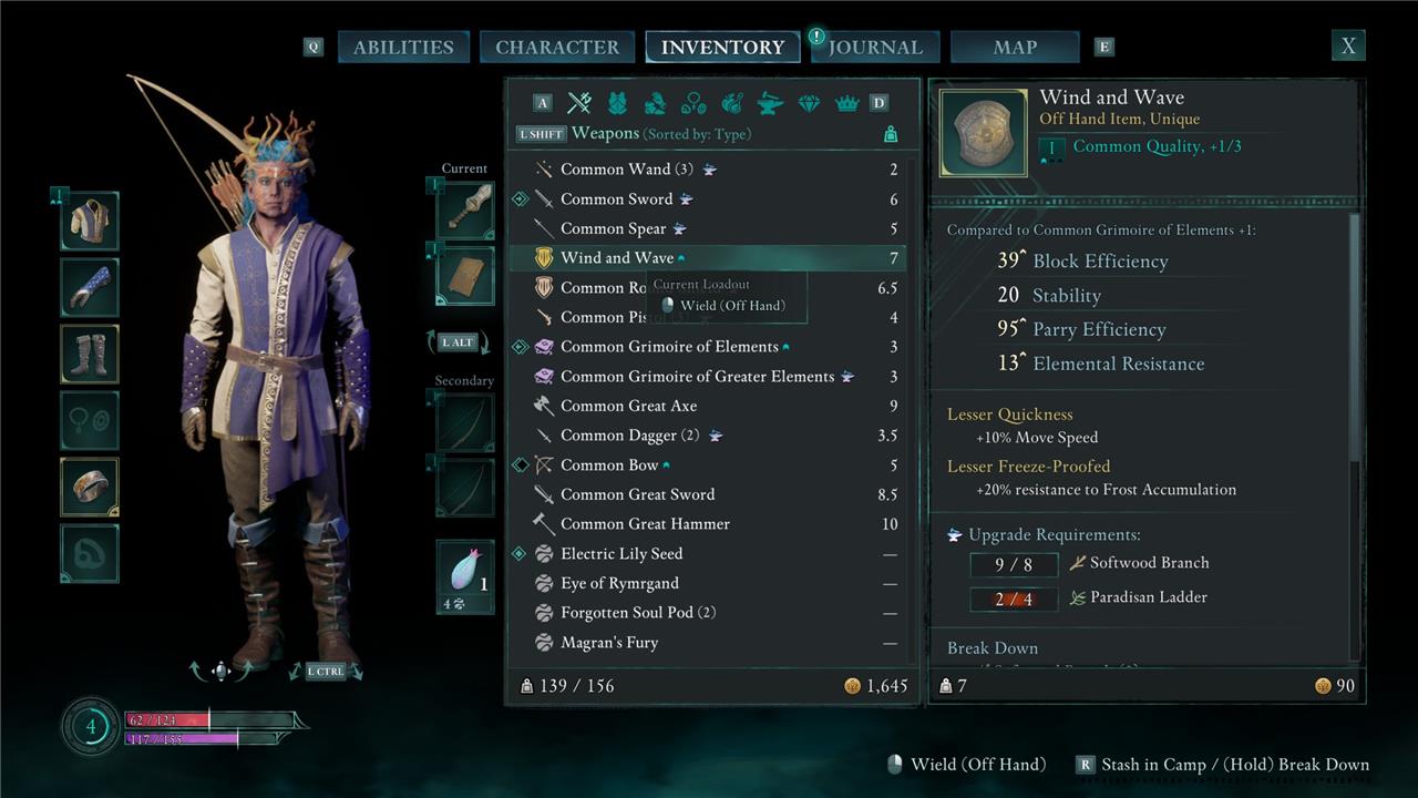The Wind and Wave shield has higher stats than the common shield you can find or buy in Claviger’s Landing, and it comes with two enchantments.