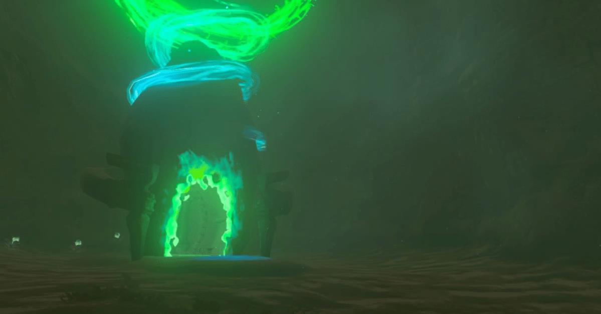 This is a Rauru’s Blessing shrine, which means the challenge is external to the shrine itself. In this case, it’s just a matter of reaching the shrine, which is hidden deep in some ruins underground.