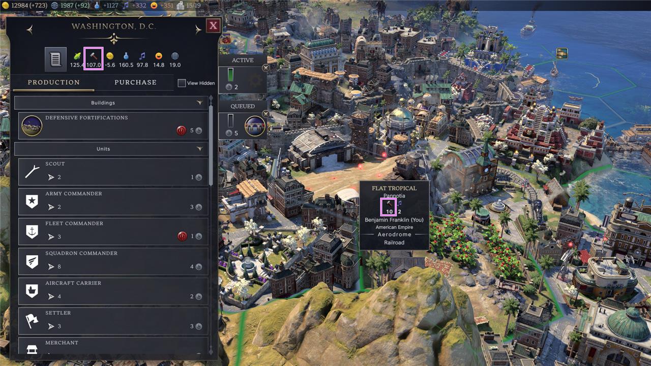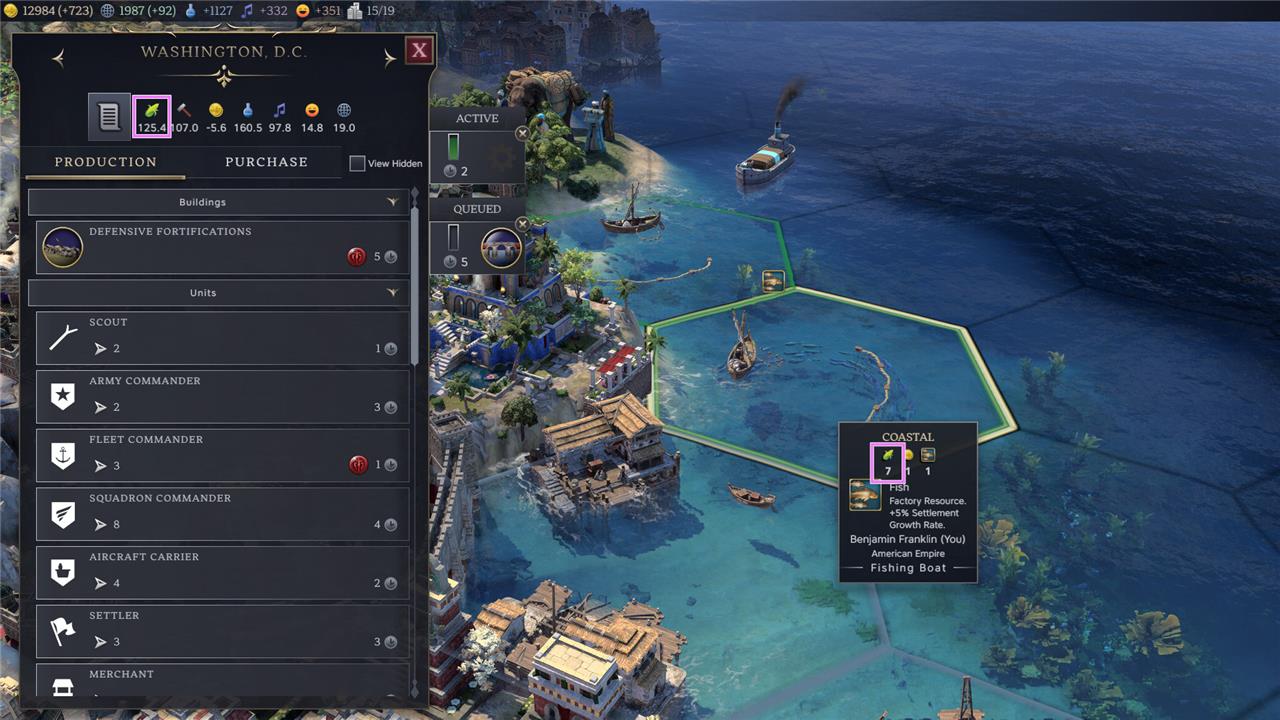 Production comes from improving tiles and constructing buildings. See our guide on how to increase Production for tips on maximizing this yield.