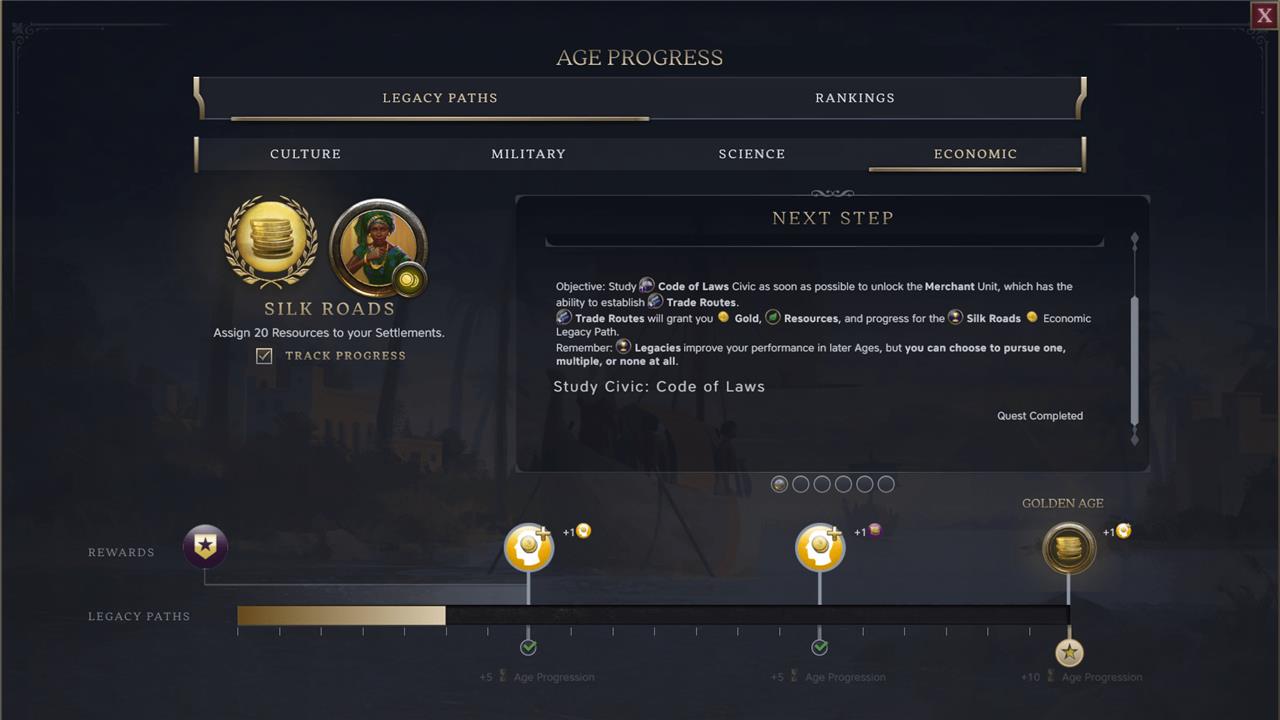 In the Antiquity Age, you have one of the simplest objectives in any of the Legacy Paths. All you need to do is have a combined 20 resources slotted into your various towns and cities by the end of the age. Now, you have to do a bit of research to get there, and there are ways to fumble it, but chances are you might’ve accidentally gotten most of the way through the Economic Legacy Path going for other victories before.
