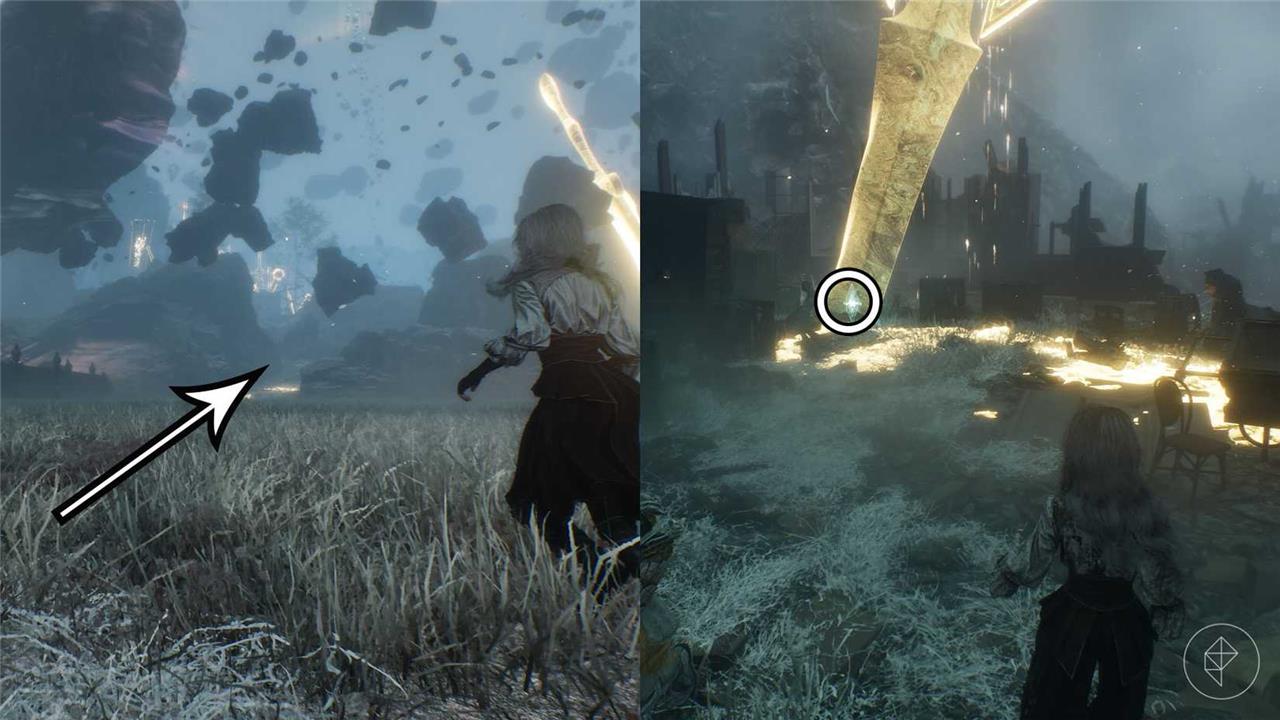 Julie’s journal lies near the edge of the high cliff northwest of the Forgotten Battlefield, overlooking the misty valley below. The area is quiet, with only wind and the faint echo of distant conflict breaking the silence. Search close to a weathered camp setup near a collapsed supply crate surrounded by charred stones. The journal rests among debris, half-buried under scattered papers and faded equipment, hinting at a hurried departure.