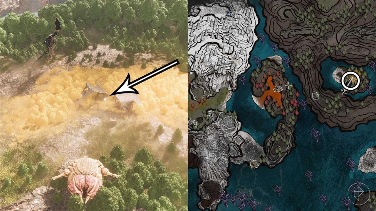You can only access Crushing Caverns once you unlock Esquie’s swimming ability. Once inside, follow the only available path, which will lead you to an ambush. Defeat the Giant Sapling boss, then continue along the path that opened. Climb the rope and follow the path on the left to find Journal 45.