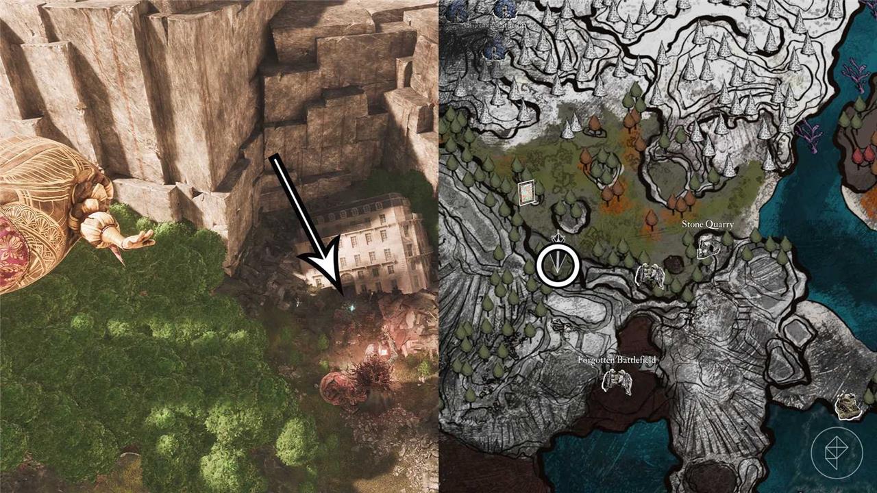 From the east exit of the Forgotten Battlefield’s north side, head to the stone quarry. Climb the crates near the entrance, then jump across the broken wooden platforms to a ledge on the right wall. The journal sits on a small outcrop behind a cluster of loose rocks-smash them to reveal it.