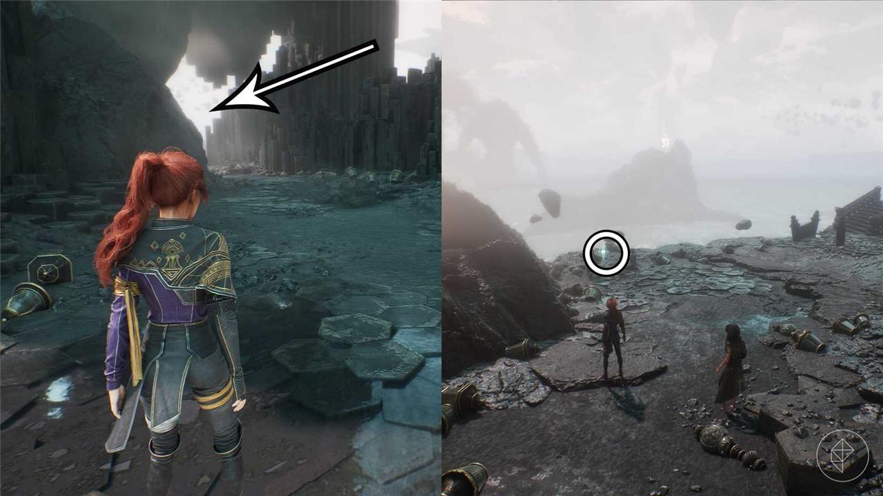 A crisp, windswept shoreline scatters with carmine-tinted rocks along the northern edge of Gestral Village, where cold spray stitches the air and the map’s margins fray at the edge of memory.