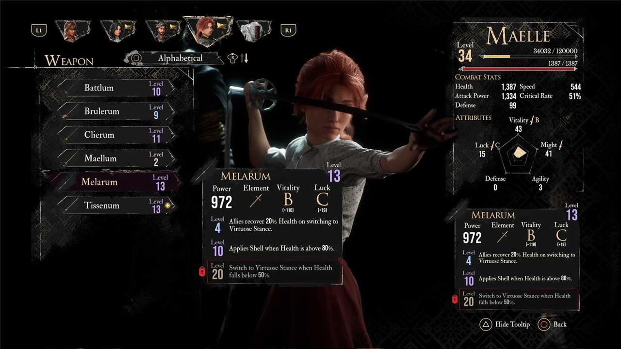 The goal of this build is to give you a bit of versatility (and not suffer if you by any chances haven’t got a good weapon for it). To that end, we want to use one of two weapons available for Maelle, Medalum, which scales with Defense and Luck, or Melarum, which scales with Vitality and Luck. Additionally, you want to have other characters in the party who can apply Burn and Mark enemies. From Pictos to Luminas, this build prioritizes the ones that can either allow her to stay alive and increase her damage. With this build, once Maelle enters the Virtuoso Stance, you should be able to reliably do a boatload of damage to enemies. This is not the quickest build you will see for Maelle, but it is a highly reliable one.