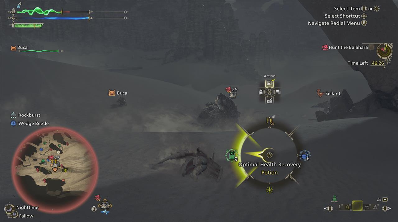 In Monster Hunter Wilds, using potions is straightforward and essential for survival during hunts. To use a potion, first ensure you have one in your item pouch. You can then access it through the item bar by holding the appropriate button (L1 on PlayStation, LB on Xbox, or mouse wheel on PC) and scrolling to the potion, then pressing the use button (Square on PlayStation, X on Xbox, or E on PC). Alternatively, you can use the Radial Menu to select the “Optimal Health Recovery” option, which automatically uses either a Potion or Mega Potion depending on your health loss. Potions can be crafted manually via the Crafting List in the menu or set to auto-craft when you gather the necessary materials, making it easy to maintain a steady supply during your adventures.