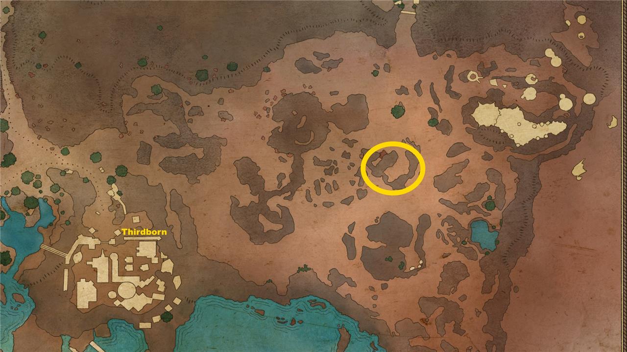 This map is easy to miss unless you’re exploring every part of Shatterscarp. It’s on a skeleton in the middle of the Sand Sea, in a small encampment roughly near the “S” in “Sea” on your map marker. The camp overlooks a posse of Dreamthralls, but if you stick to the tents, you should be able to grab the map without alerting any enemies.