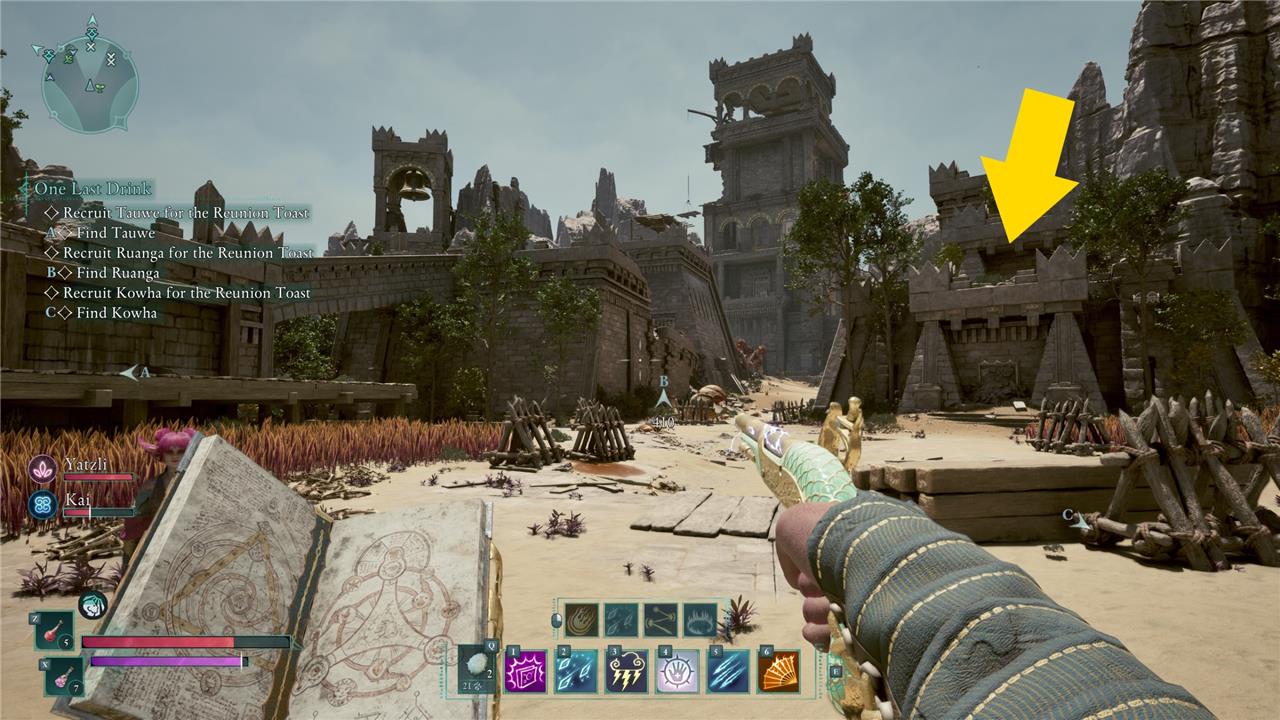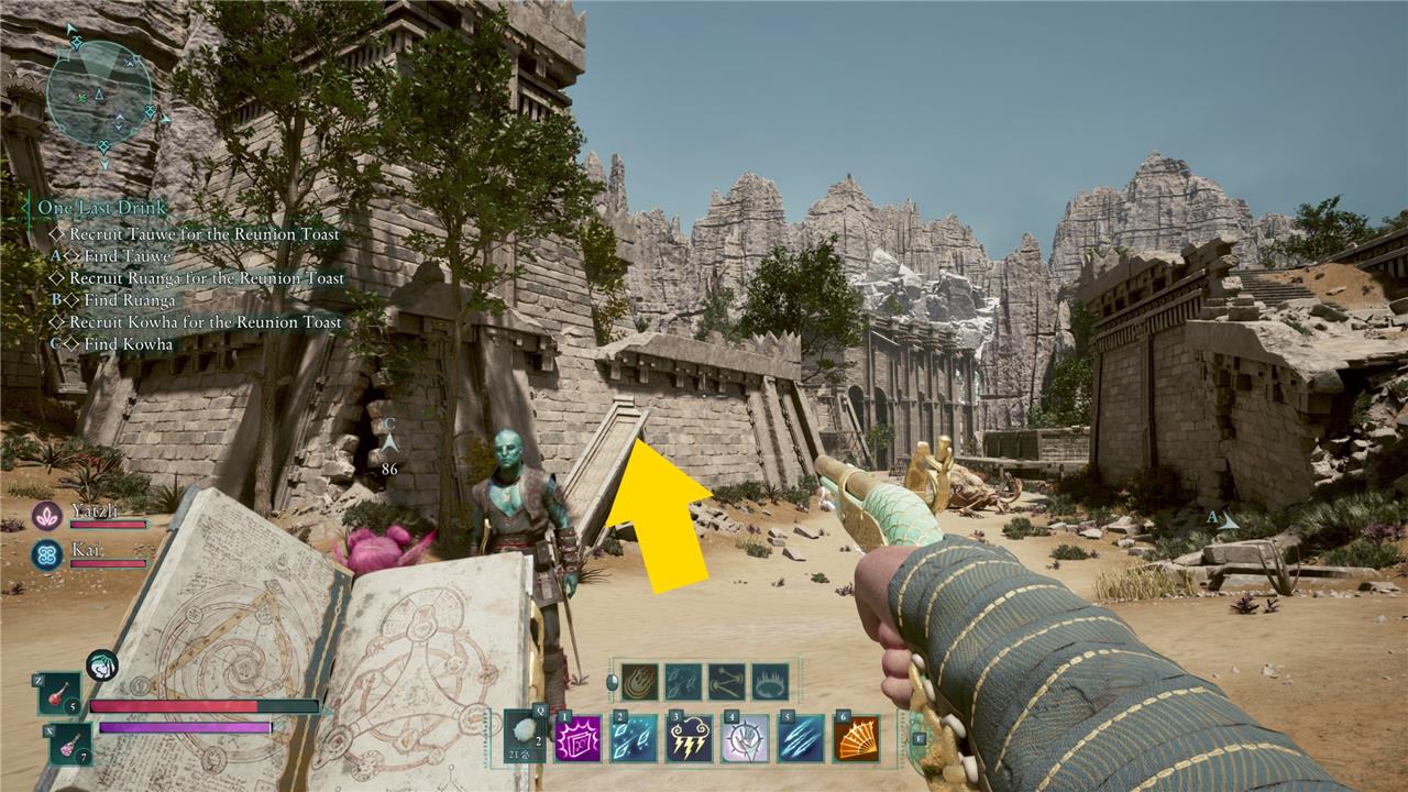 The position this map shows is in the middle of a clearing full of skeleton warriors and beetles, and to the left is a small enclave of powerful ghosts. The best way to handle this situation safely is to just face south from the fast travel beacon and climb the fallen stone pillar.
