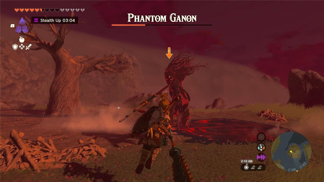 Weapons with at least 30 attack power, preferably spears fused with high-damage materials like Silver Lynel horns or Diamonds, excel against Phantom Ganon by allowing safe pokes outside his Gloom pool. Eight hearts minimum provide breathing room against his heavy hits and Gloom drain, though 10+ is safer; pair with Gloom-resistant Depths armor.