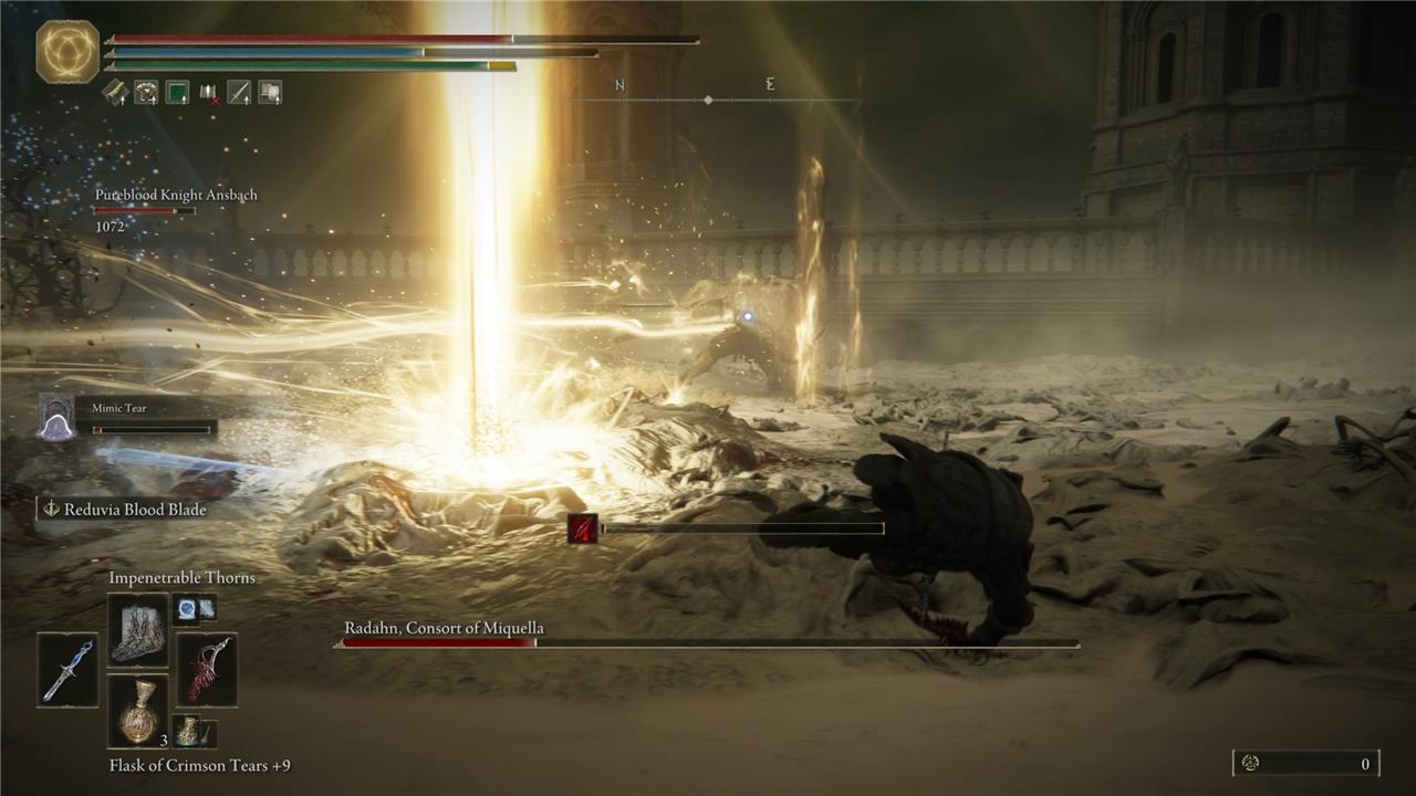 Similar to the frost build we recommended for the Messmer boss fight, the goal here is to exploit Consort Radahn’s weaknesses with every attack. Avoid including other spells aside from Impenetrable Thorns, so your Mimic Tear won’t waste time on them, and make that spell your primary attack.