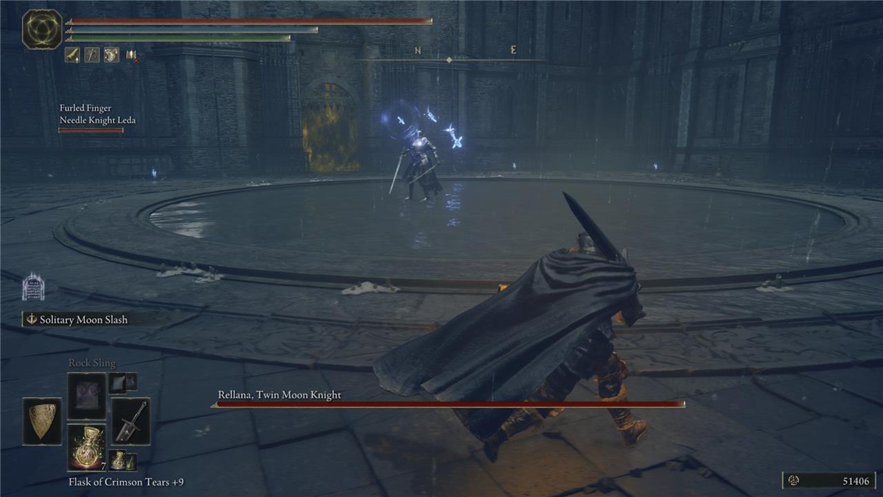 I struggled to land more than two hits at a time even with a katana. However, fighting styles with straight swords and light greatswords are lithe enough to let you execute a few attacks – even a well-timed Ash of War skill – and retreat while Rellana recovers. Milady, which you can find near the Miquella’s Cross at the Castle Ensis checkpoint, is a strong choice for this fight.