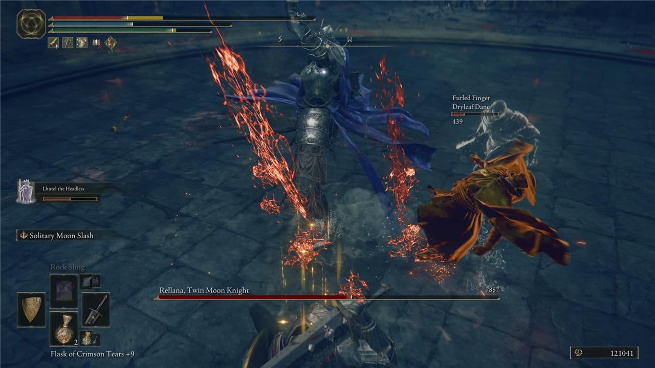- Then comes a follow-up from the other sword, which might be an upward slash or an overhand strike. Rellana may add several of these in the middle of her combo, or a downward slash from both swords, or even a little twirling slash.