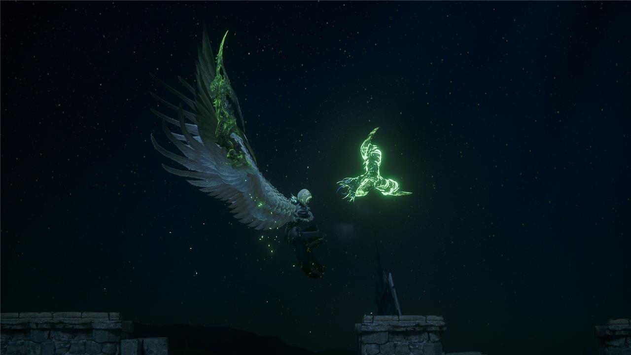 • Aero Rain: Benedikta will take to the skies and shoot a group of six wind orbs in your direction. She’ll continue to fly around the stage and throw eight more groups of orbs. You can either run to the side of the orbs or dodge just before they hit the ground to avoid this attack.