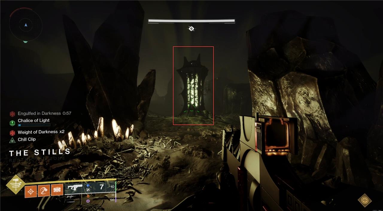 You’ll be dropped into the Hellmouth when you load into the raid. In front of you, you’ll see a Chalice of Light spawn and a plate to stand on to create a bridge. Grab the Chalice of Light to get Enlightened. This will cause Thralls to spawn.