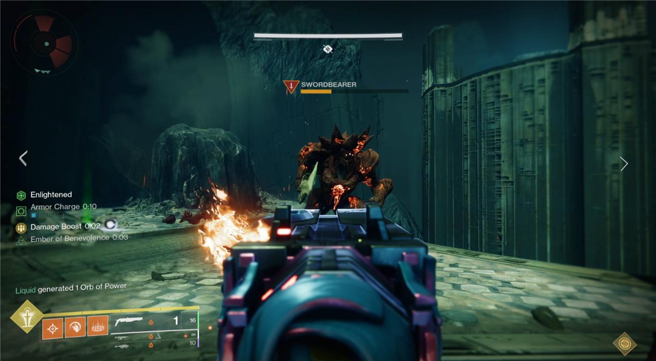 The cycle for this encounter is simple. First, kill the four boomer knights, two in the left and right towers. This will spawn two ogres and one Swordbearer in the middle. Once you kill the Swordbearer, someone who is Enlightened must pick up the sword. Like other parts of the raid, the window of opportunity to pick it up is short, so coordinate when to kill the Swordbearer. After that Swordbearer dies, some wizards and thrall will spawn under the towers and in the middle. The four boomer knights will respawn after a few seconds, and the cycle repeats.