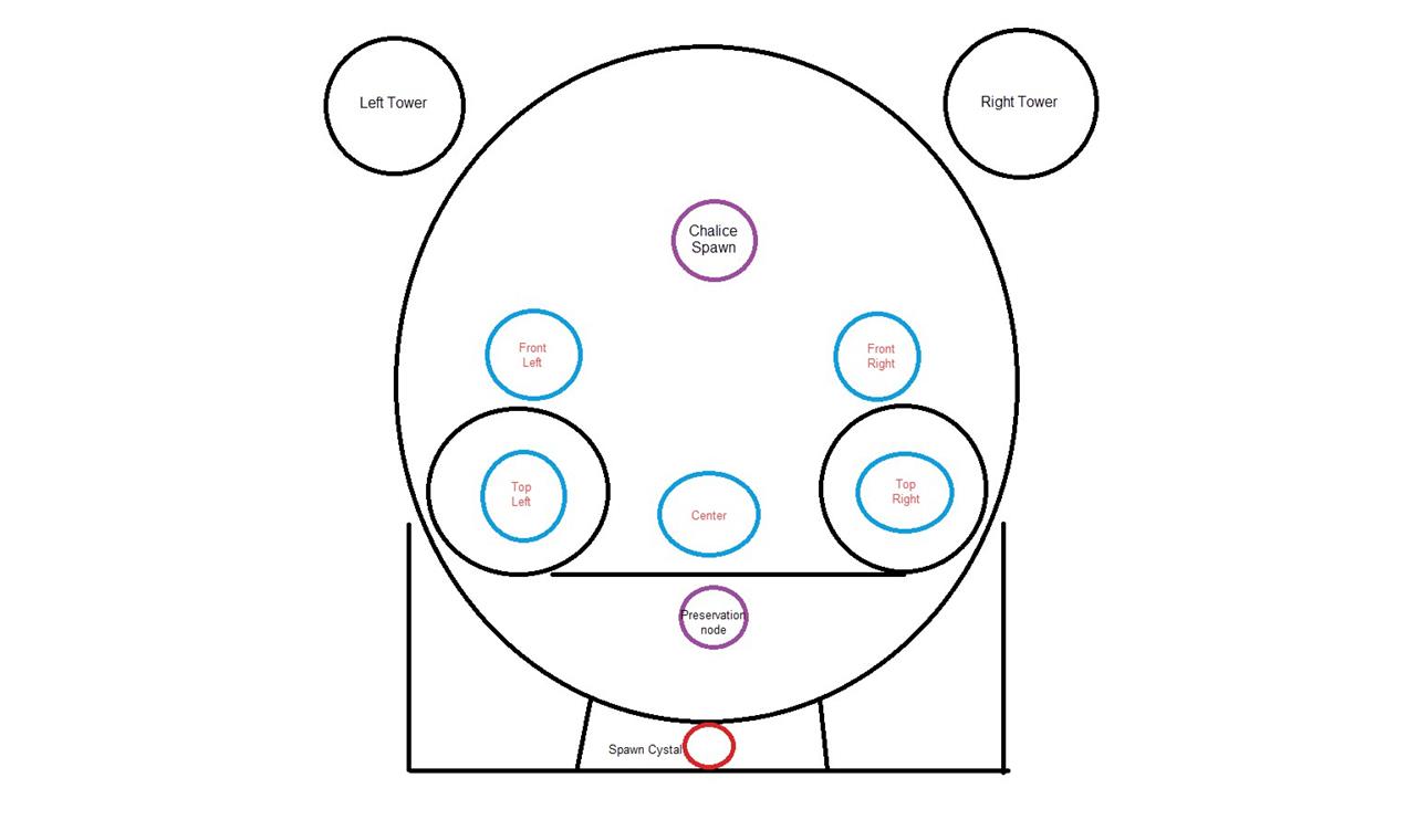 In this strategy, Enlightened 1 will dump their first buff into the plate to help build the bridge, and once it comes around to their time to collect the Chalice from Enlightened 6, Enlightened 2 will be on the middle plate with a sword ready to cross. Both players should cross at this time, with Enlightened 2 focusing on killing the Gatekeeper and Enlightened 1 focusing on dunking the Chalice into the preservation node before their bar fills up.