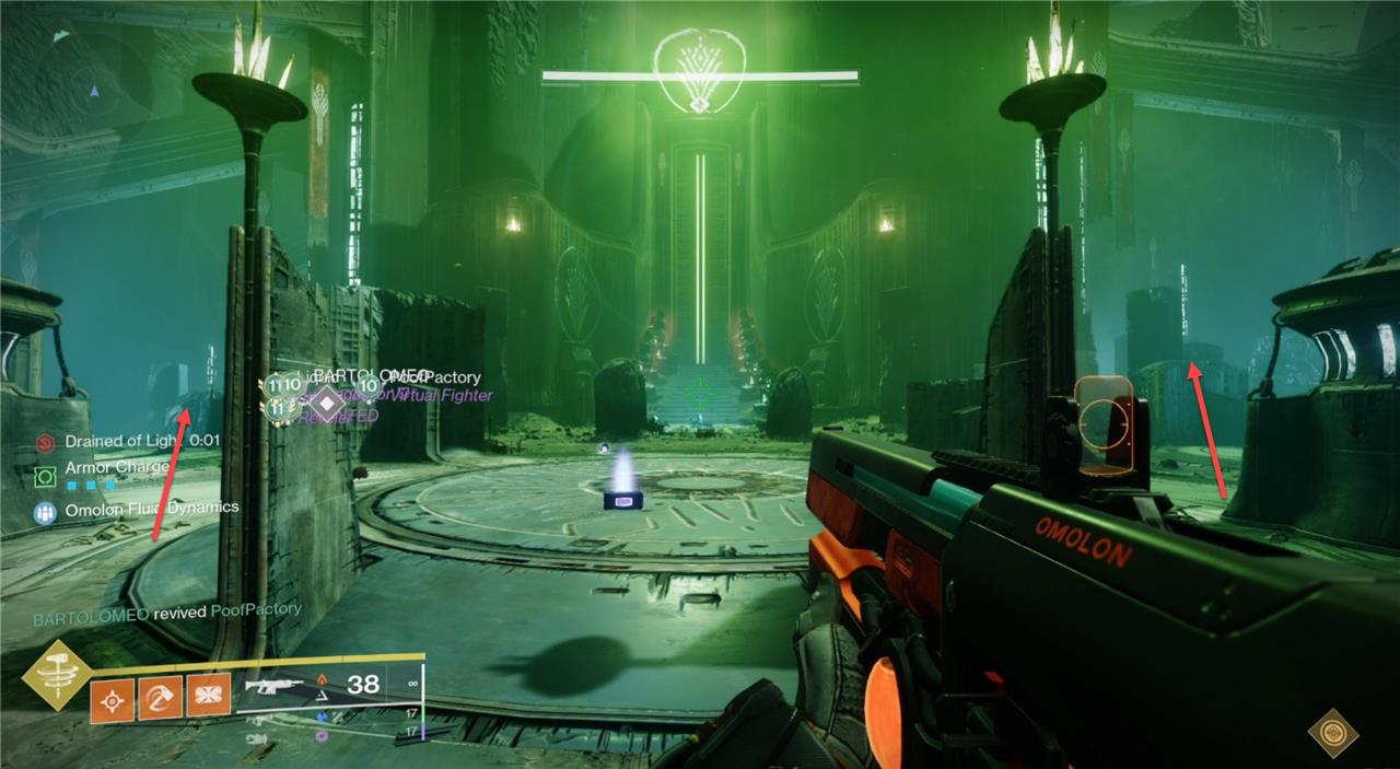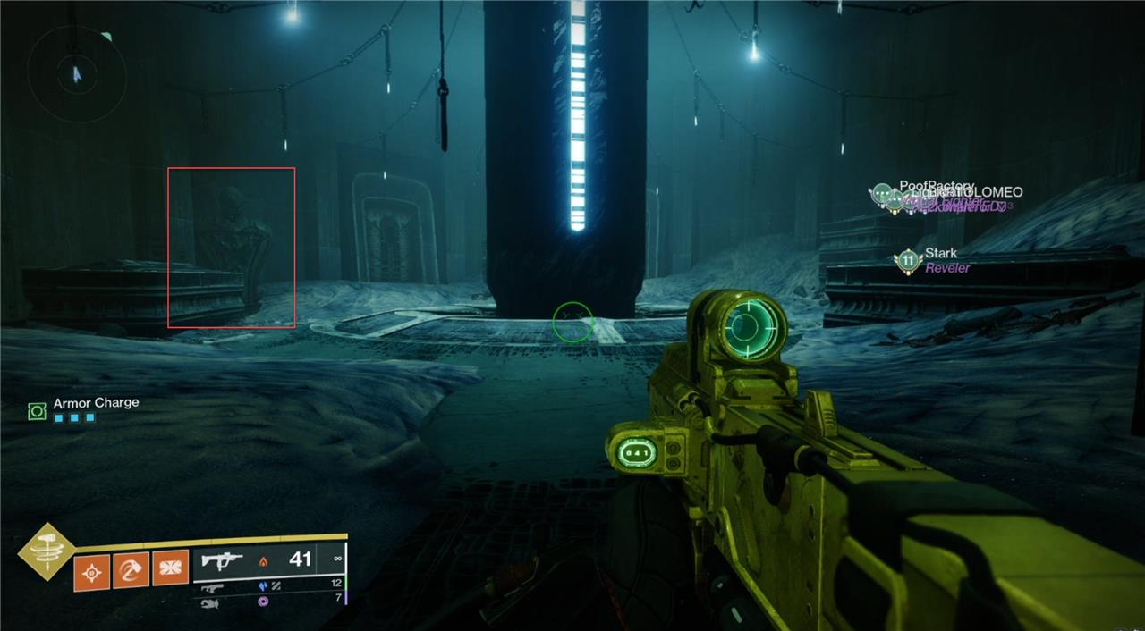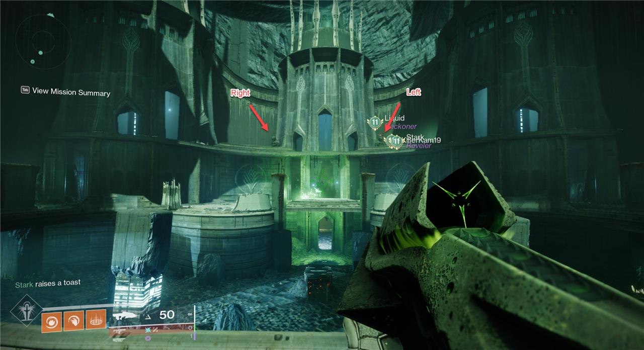 Once you reach the bridge encounter, stand on the rally flag and look across the chasm before you start. Whichever statue was lit up on the first set, walk down the stairs and head in that direction. In our example, we’d head to the right. Hug the wall until you reach an open room – this is where the ads spawn from in the encounter.