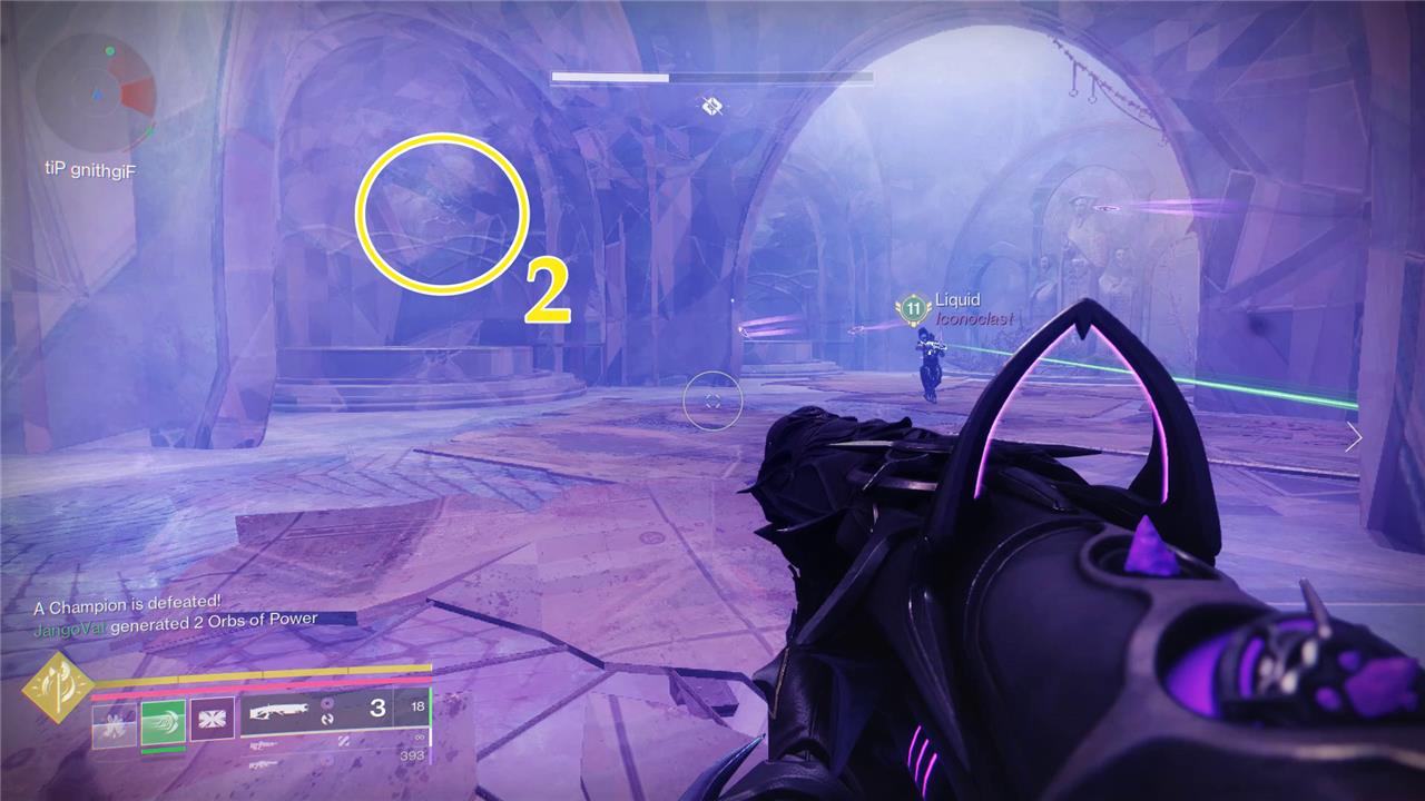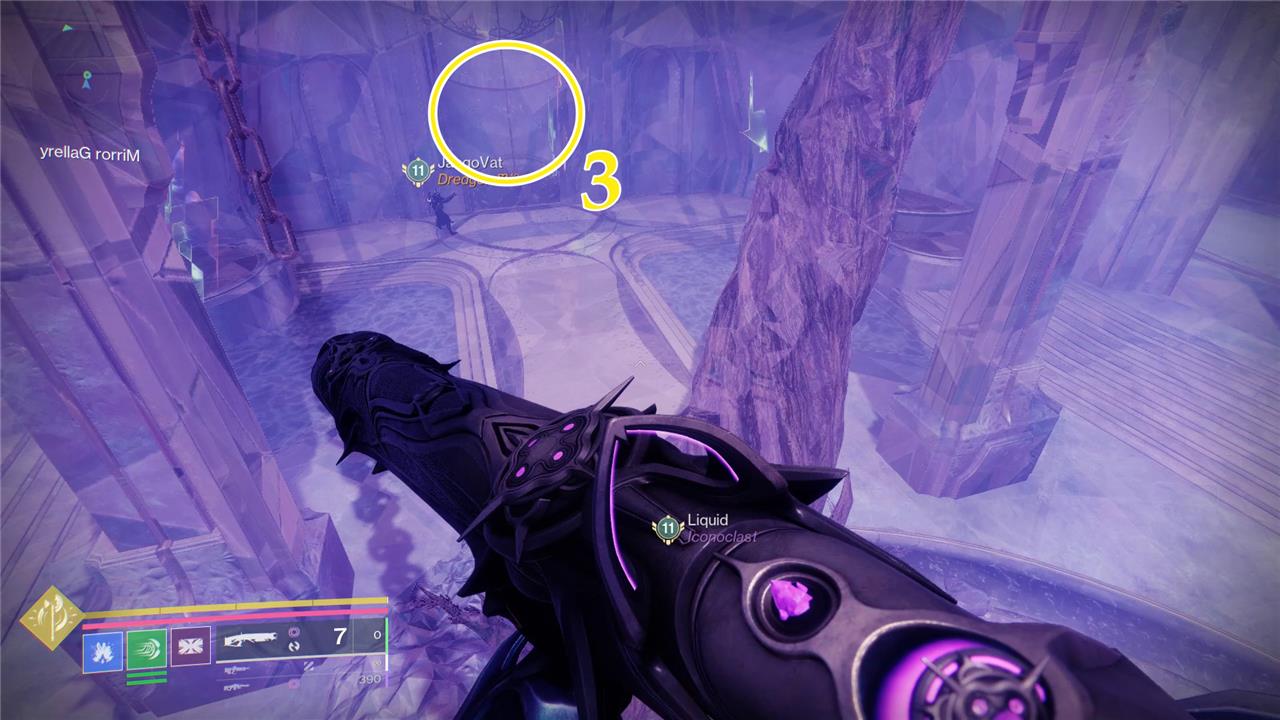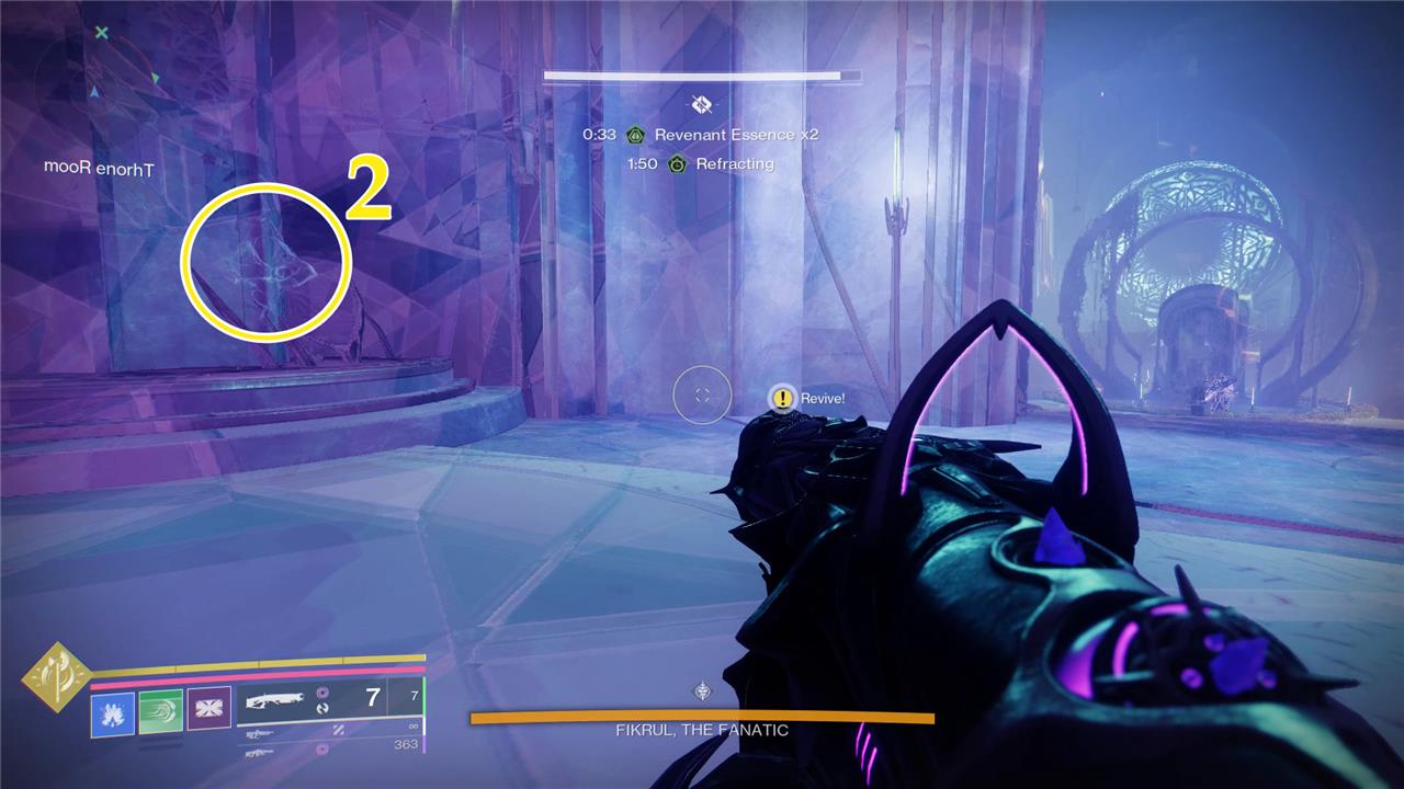 - The third and final Illusory Anchor for “Revenant Slayer 4,” is on the right side of the arena, in the small hallway. It’s near the Awoken statue on the throne-side of the room, but it’s floating about 10 feet in the air, making it hard to find. Destroy it.