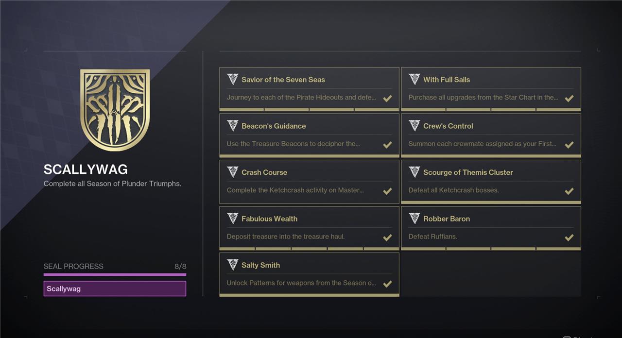 All of the Triumphs associated with the Scallywag title are getting vaulted when Lightfall starts. If you need help with these Triumphs, you can follow this great video guide by StrawDesertHD here: