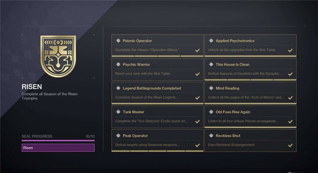 All of the Triumphs associated with the Risen title are getting vaulted when Lightfall starts. If you need help, follow our Risen Title guide.