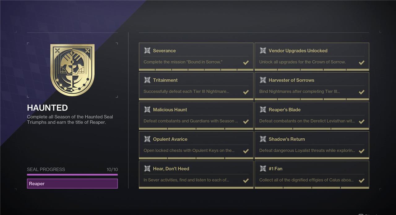 All of the Triumphs associated with the Reaper title are getting vaulted when Lightfall starts. If you need help with these Triumphs, you can follow this great video guide by This Week In Video Games here.