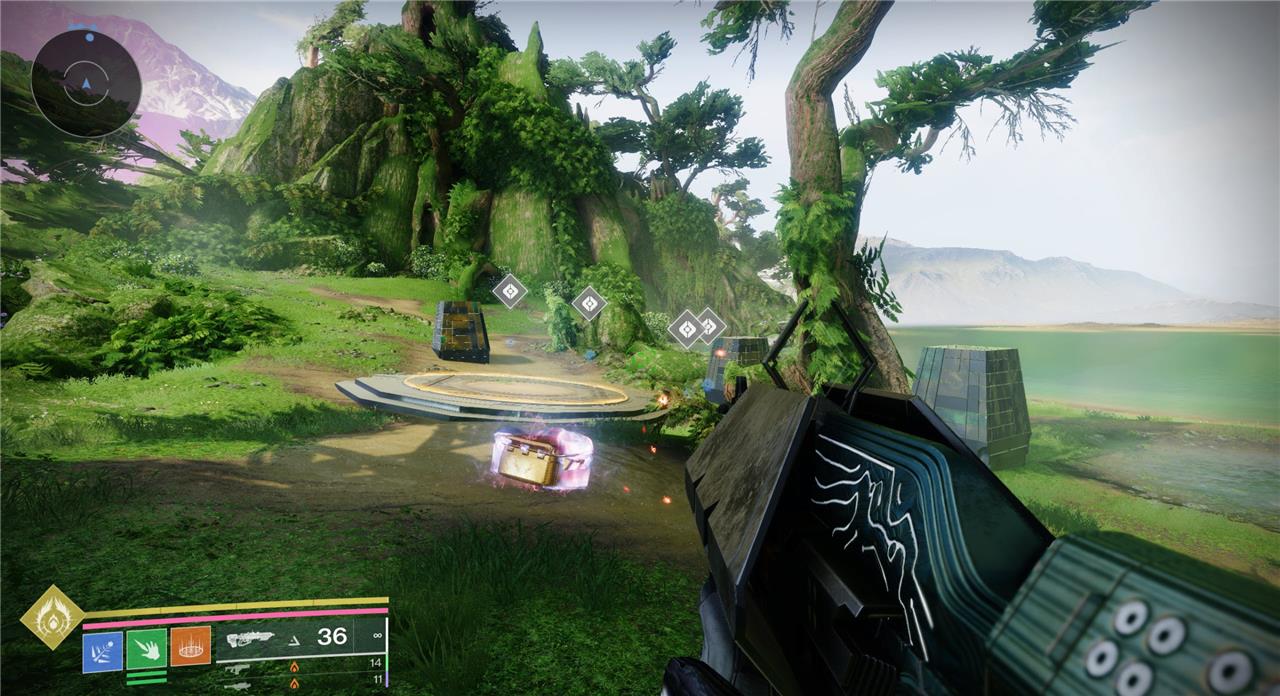Once you have all four ghosts, continue down the path until you see four ghost markers on your map. They will be next to a chest and a plate. Stand on the plate and kill the four waves of enemies that spawn. Once you kill the boss, the Overgrown Prismatic Key will drop. Use that key to unlock the chest and acquire the Facet of Mending.