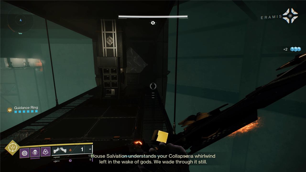 This fight is a larger and more hectic version of the entrance encounter. You’ll find yourself on the outside of the tower, working with two winding wires per floor to activate a grav lift and send you closer and closer to the top.