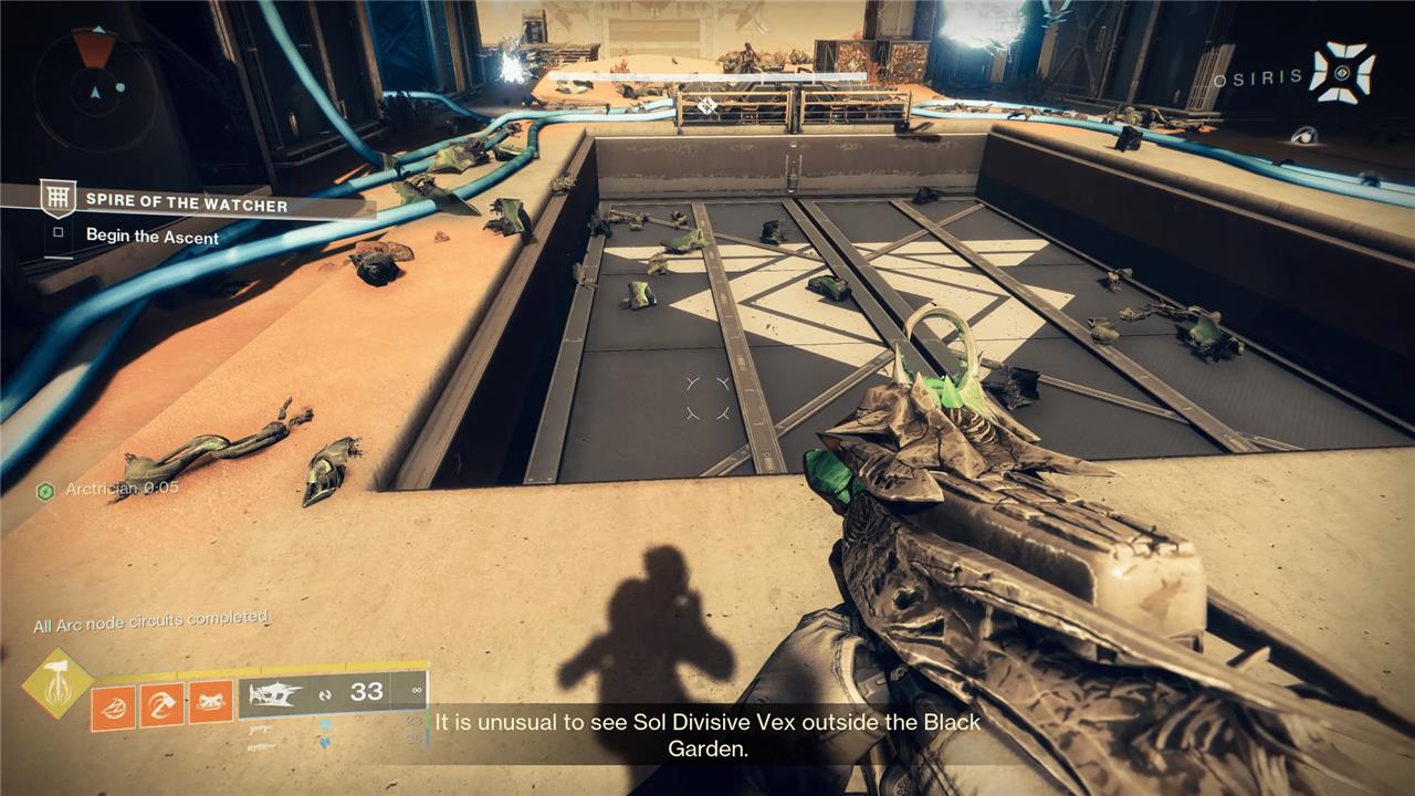 Grab the Arctrician buff and find the genesis point for both wires. Activate them both and carefully jump around the tower activating the other nodes in order. You’ll need to complete six total circuits on three different floors to finish the encounter. But once it’s over, you’ll finally get your first taste of dungeon loot.