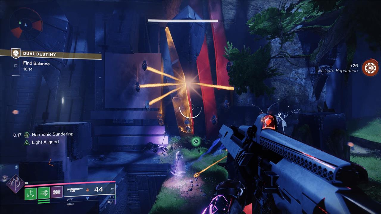 Once you shoot the three matching Crux with Harmonic Sundering, you’ll destroy the big Crux on either side. Do this two more times to end the fight.
