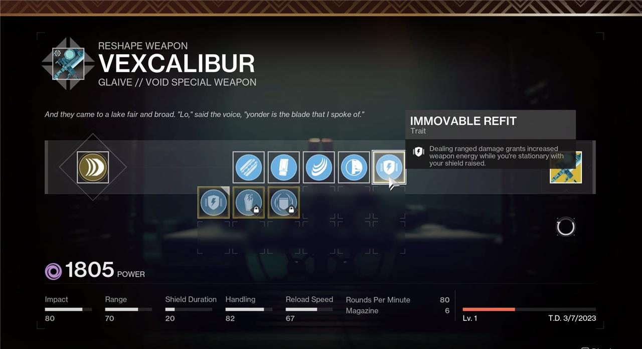 To earn the Immovable Refit for Vexcalibur, complete the mission again after acquiring the glaive and locate the hidden chests scattered throughout the area. Each chest grants data fragments that you can exchange at the HELM to upgrade your weapon. The Immovable Refit enhances Vexcalibur’s defensive traits, improving its shield duration and resilience during combat. Completing these runs not only strengthens your glaive but also lets you fine-tune its performance to match your preferred playstyle.