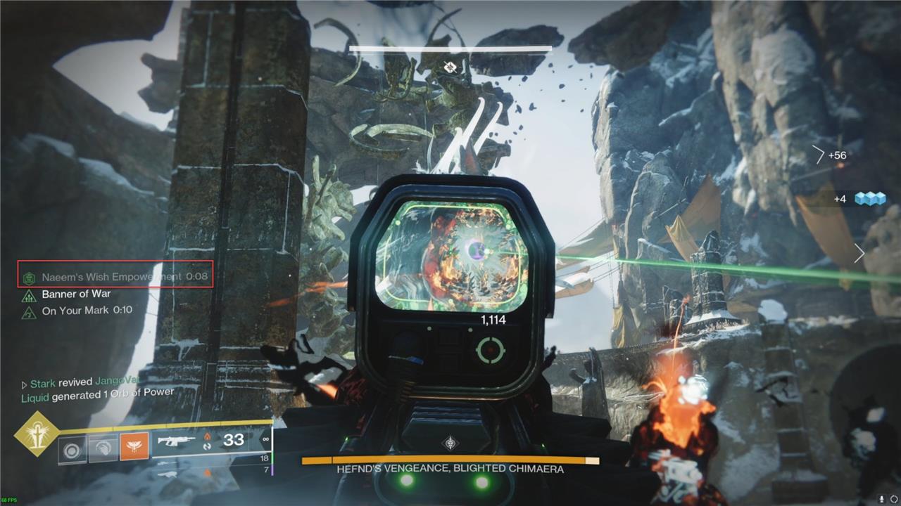 The second encounter requires you to brave a snowstorm to light pyres that’ll shield you as you fight a large Taken Ogre. You do this by activating four Scorn lanterns, which spawn four “Burning Desire” orbs. Take these orbs to four pyres around the front boss area to start the DPS phase.