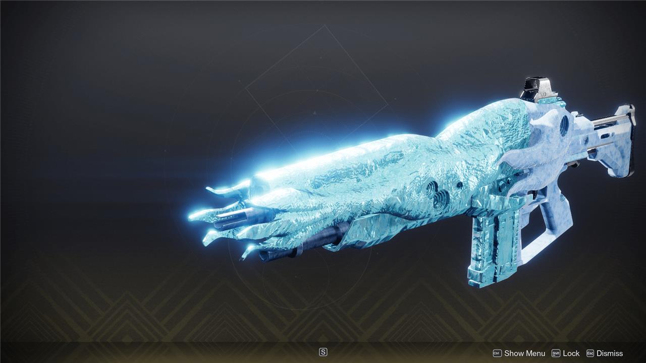 You can apply the Dawning Memento to any of your crafted weapons by visiting The Enclave. Once you attach the Memento to your gun, you’ll be able to track how many Snowballs you create with it starting at weapon level 1. At level 20, your gun will get the Winter Night title, and at level 30 you’ll unlock the Rime Keepsake Shader, which is only available to use on weapons that have the Dawning Memento applied. You can see the unique shader on the Root of Nightmares weapon Rufus’s Fury (Adept) in the image above!