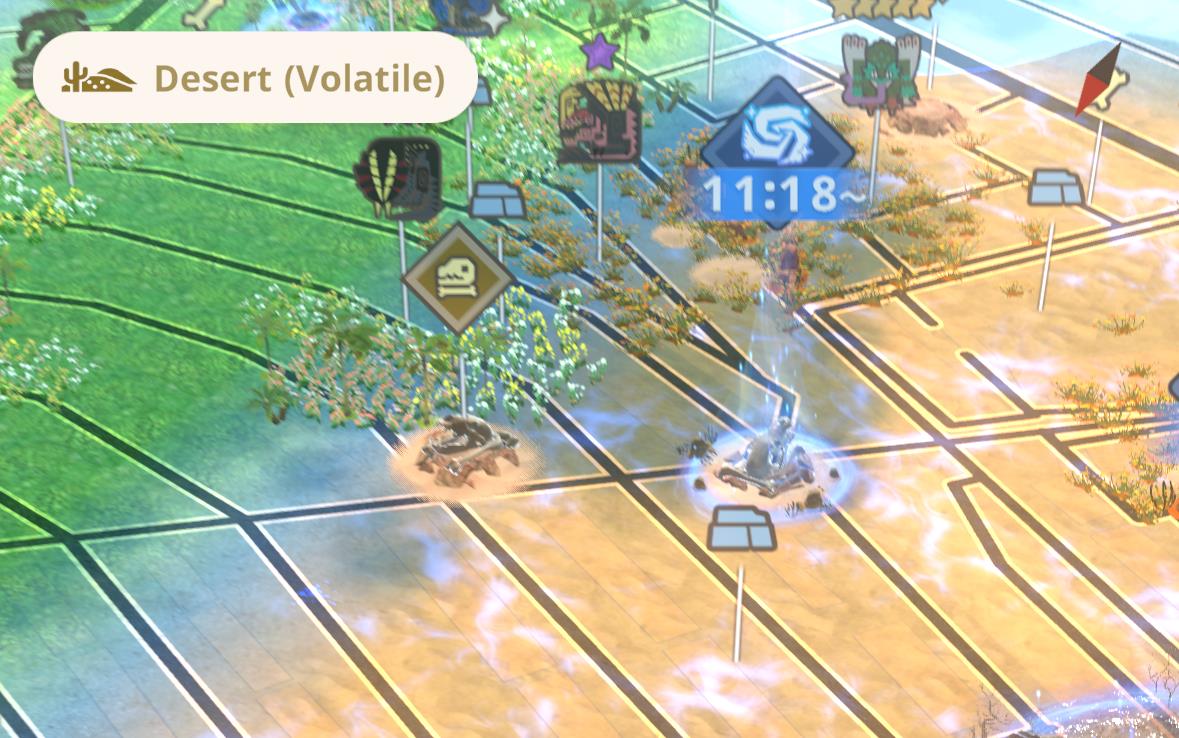 However, the game’s display can be inconsistent. Sometimes, a region may not immediately show as volatile even if it actually is. This can happen if the area hasn’t fully loaded on your map or if you haven’t walked close enough to reveal all monster icons. As you explore further and more of the map loads, the volatile effect and label should activate if the habitat is volatile.