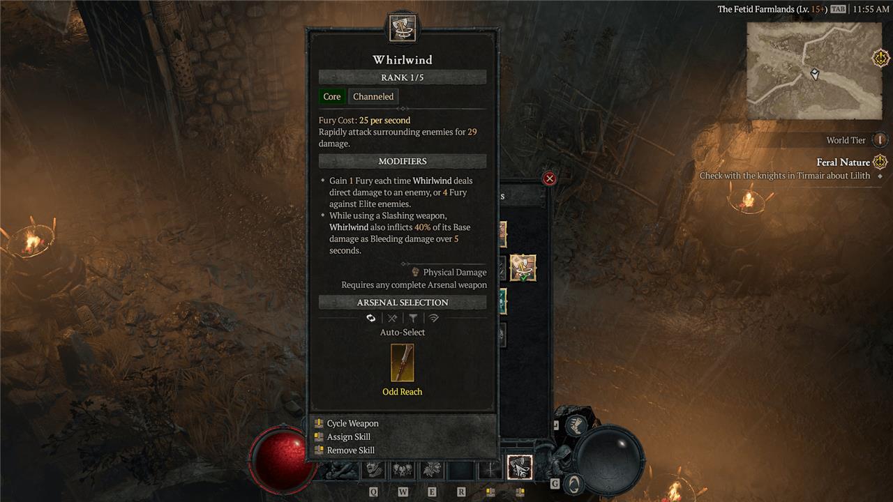 Barbarians assign Arsenal weapons to skills using specific PC keyboard controls in Diablo 4’s skill menu. These controls allow cycling through weapon types without leaving the interface.โโ