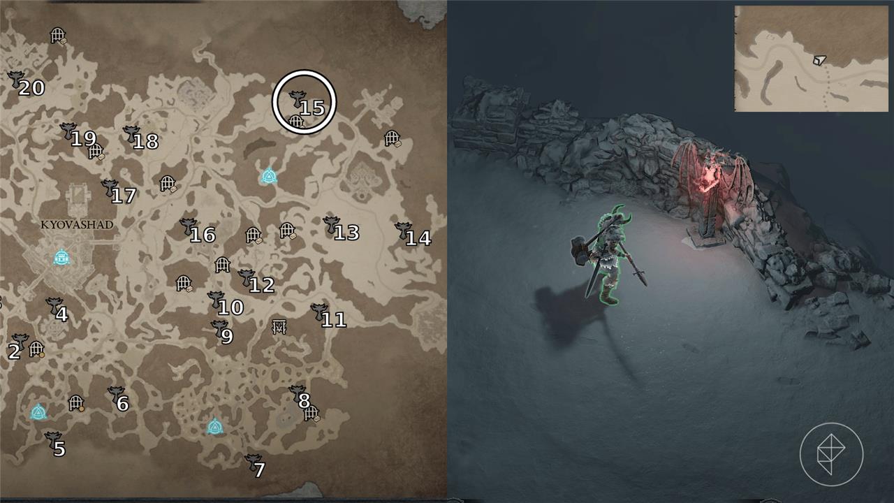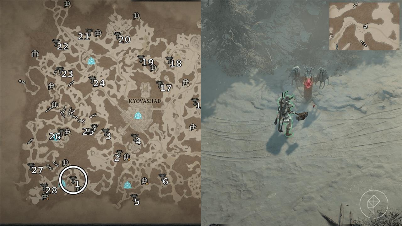 One way to gain Renown in Diablo 4is to find all of the Altars of Lilith scattered around the map. There are a total of 28 Altars of Lilith to find in the game’s first area, Fractured Peaks, with each shrine giving all of your characters a permanent buff. At the beginning of the game, you can find one altar, but the rest of the altars won’t appear until you make it to Kyovashad, the large city located in the center of the region.