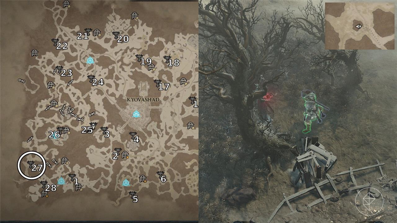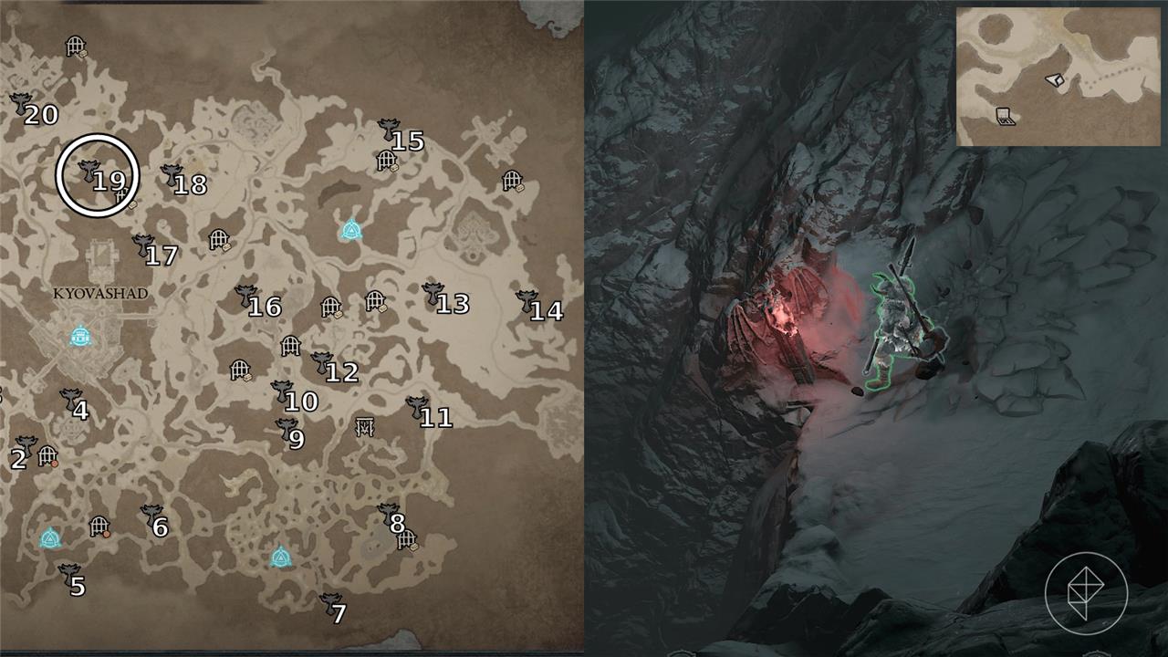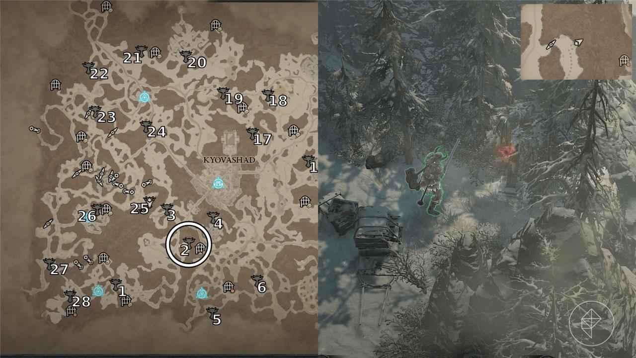 These are distributed across subregions such as Kotama Grasslands, Khargai Crags, and strongholds, often tucked in caves, behind climbable walls, or along borders-unlock a mount first for efficient traversal.โ€‹