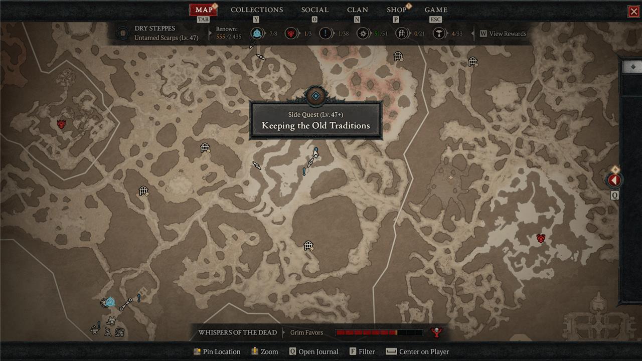 “Keeping the Old Traditions” is a tricky, emote-based side quest in Diablo 4 – similar to the “Secret of the Spring” quest in Fractured Peaks. This one takes place in the Dry Steppes region, specifically in The Untamed Scarps, and will once again ask you to puzzle out a riddle rather than smashing stuff with your hammer/spells/knives/claws/blood. Keep in mind that all side content – especially side quests – are easier to complete once you’ve unlocked the horse.