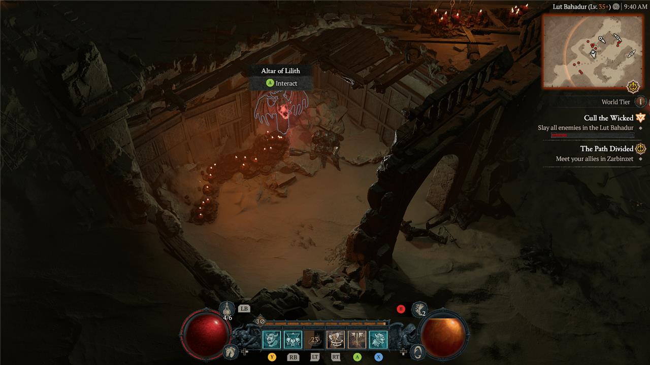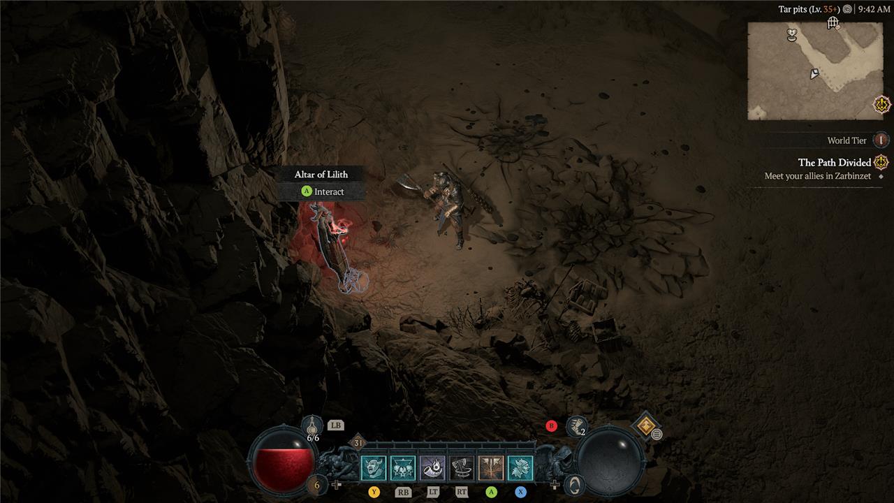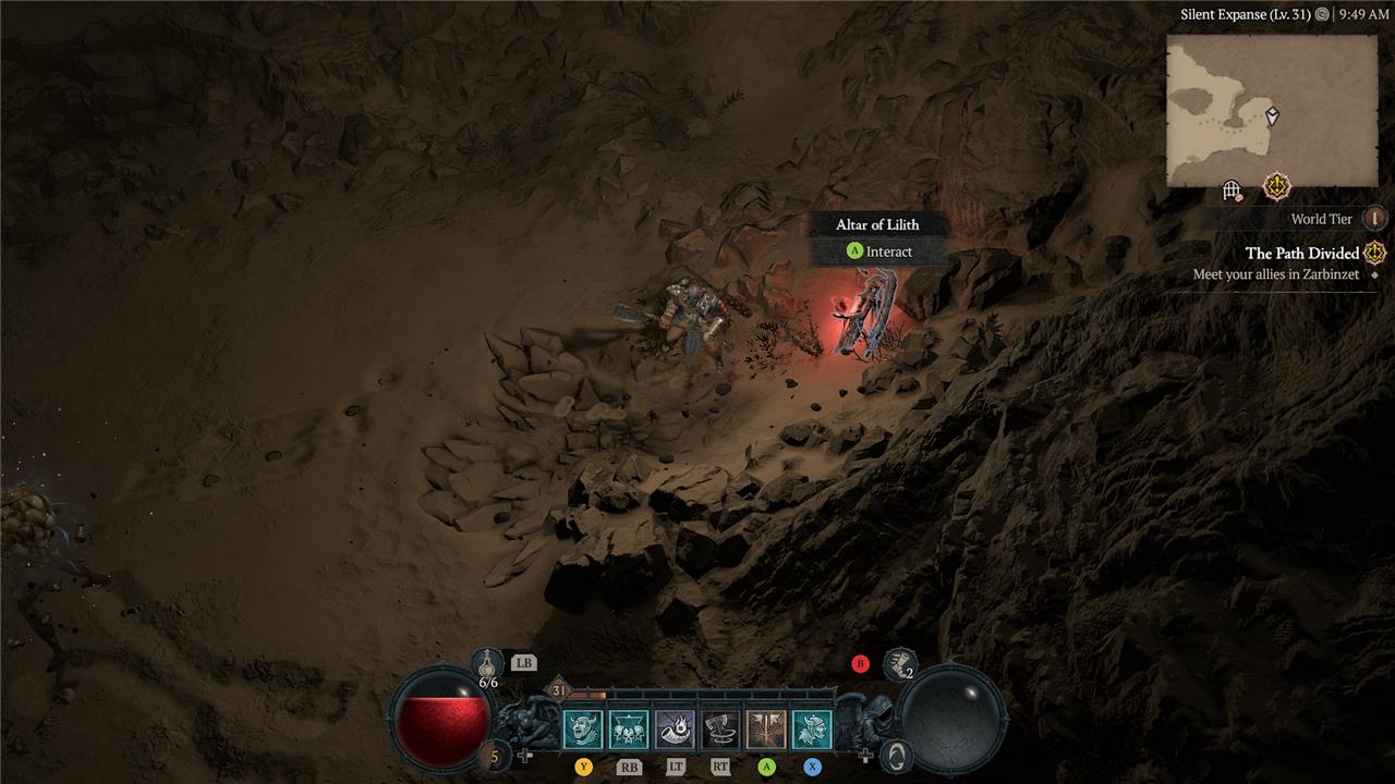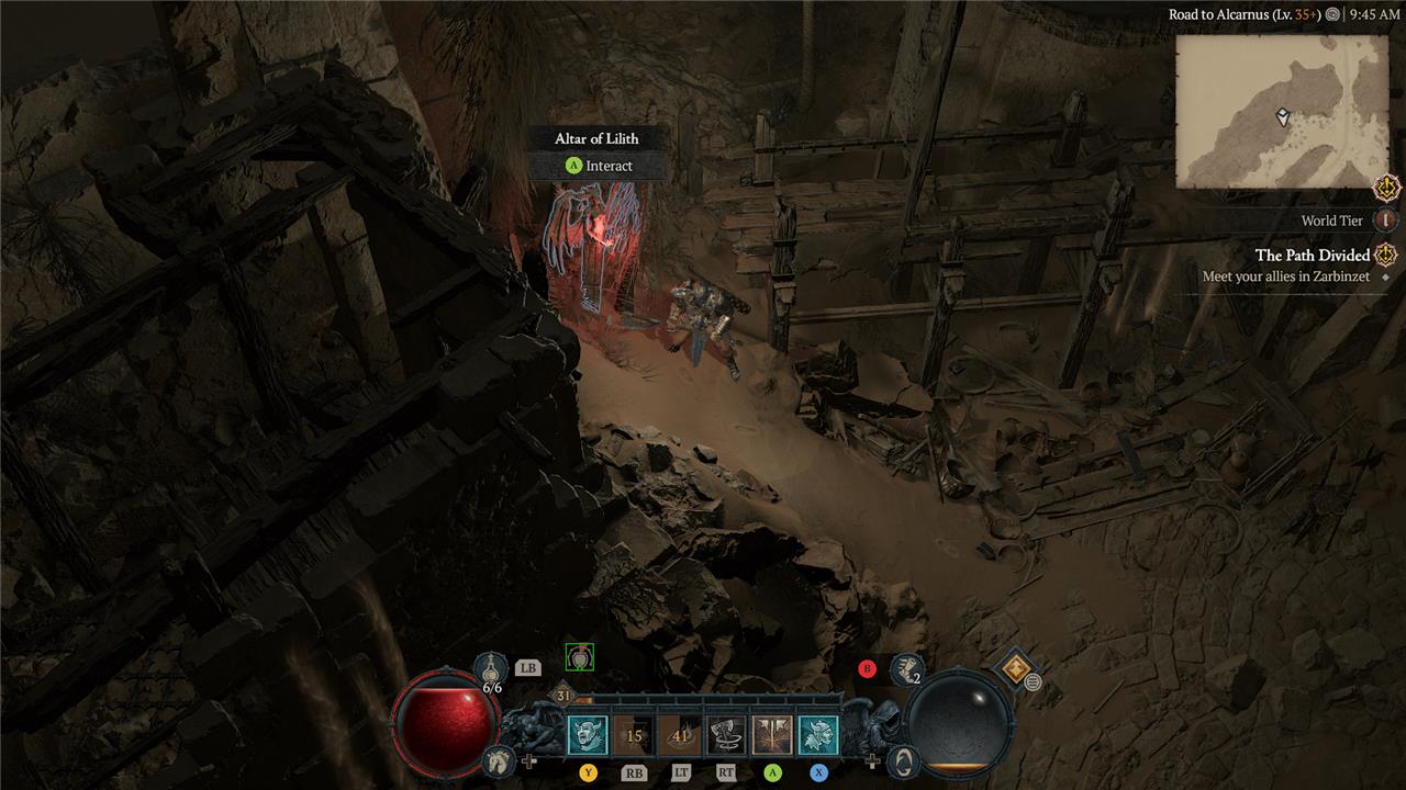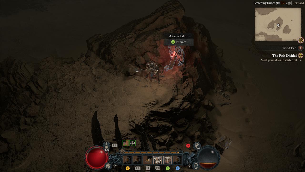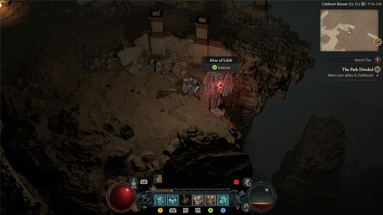East of the Alcarnus Stronghold, you’ll find a ruin that sits high above the sands. At the top, near a pillar, you’ll see the Altar of Lilith.