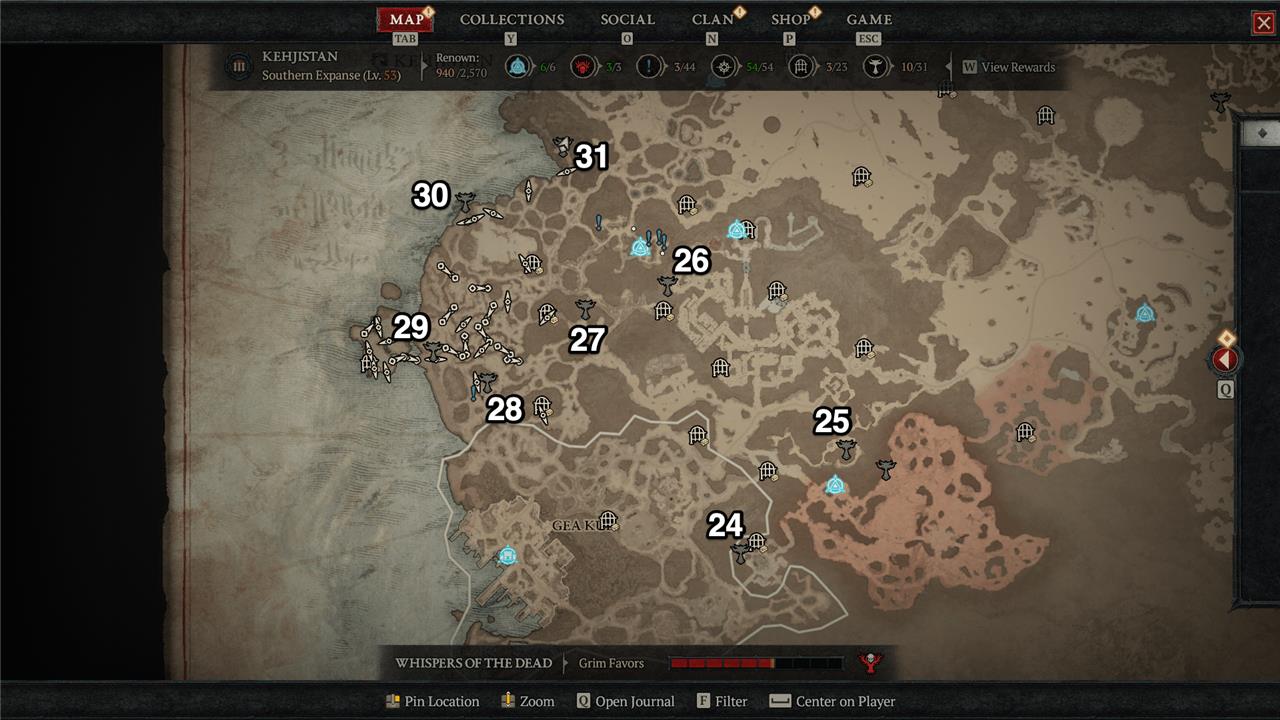 Kehjistan in Diablo 4 hosts 31 Altars of Lilith, marked on interactive maps from trusted guides for easy tracking.โ