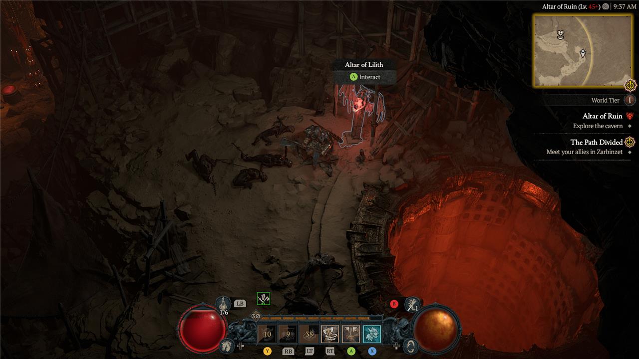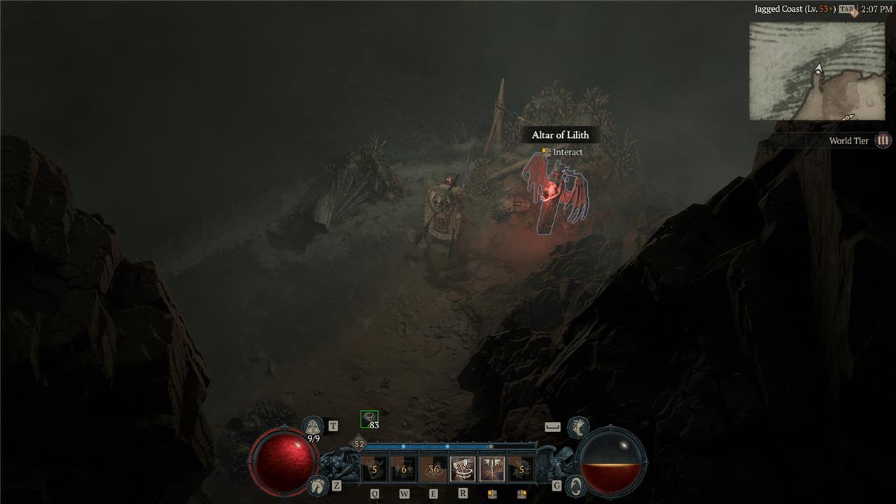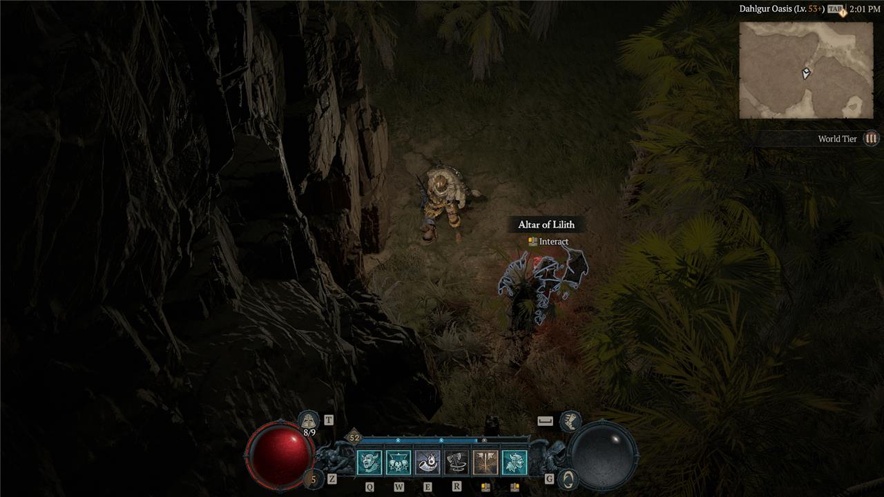 South of the Altar of Ruin, you’ll find an elevated rock face with an Altar of Lilith hanging lopsided out of the top.