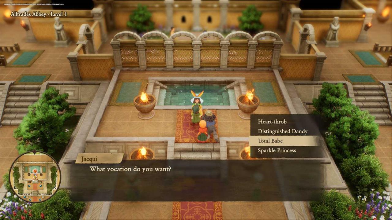 To change vocations in Dragon Quest 7 Reimagined, you first need to progress the story until you reach Alltrades Abbey in the present timeline and speak with the High Priestess, which grants access to the Career Sphere and the vocation system itself. After that, you can open the Career Sphere from your shortcuts, select a character, choose a new vocation, and confirm the change, which takes effect immediately as long as you are not in the middle of a battle. Once unlocked, vocation changes are available anywhere outside combat, letting you freely respecialize your party while keeping any skills already learned from previous vocations.