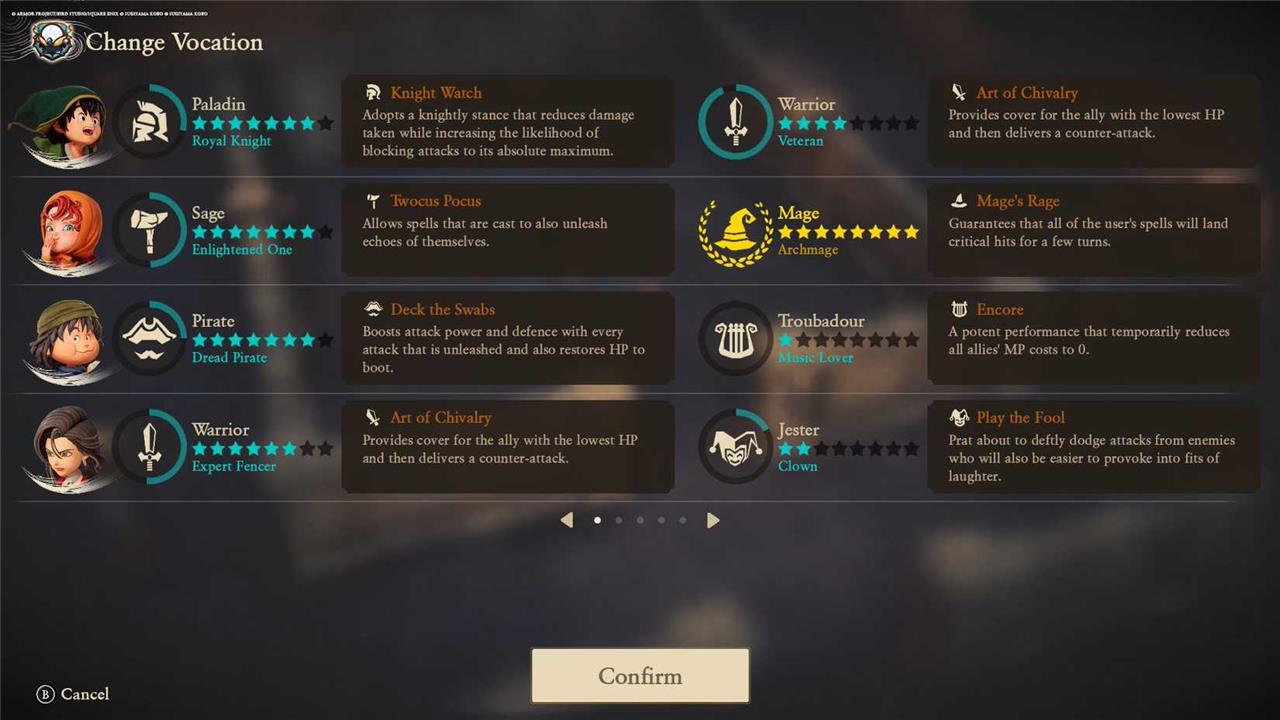 Among the initial vocations, Troubadour is the best buffer available. Although you will rarely need a dedicated buffer in the party, complementing a character’s skill set with powerful buff abilities can be extremely helpful. What makes Troubadour stand out is the four hymns it has access to: the Hymn of Air, Hymn of Light, Hymn of Fire, and Hymn of Ice. These are abilities that increase the party’s elemental defense against specific types of damage. Troubadour also has Accelerate and its upgraded version, Acceleratle, which – as you might have guessed – raises the characters’ speed. Lastly, Troubadour’s special ability, Encore allows the rest of the party to cast any skill for free, creating the perfect window to burst enemies or casting heavy healing spells.