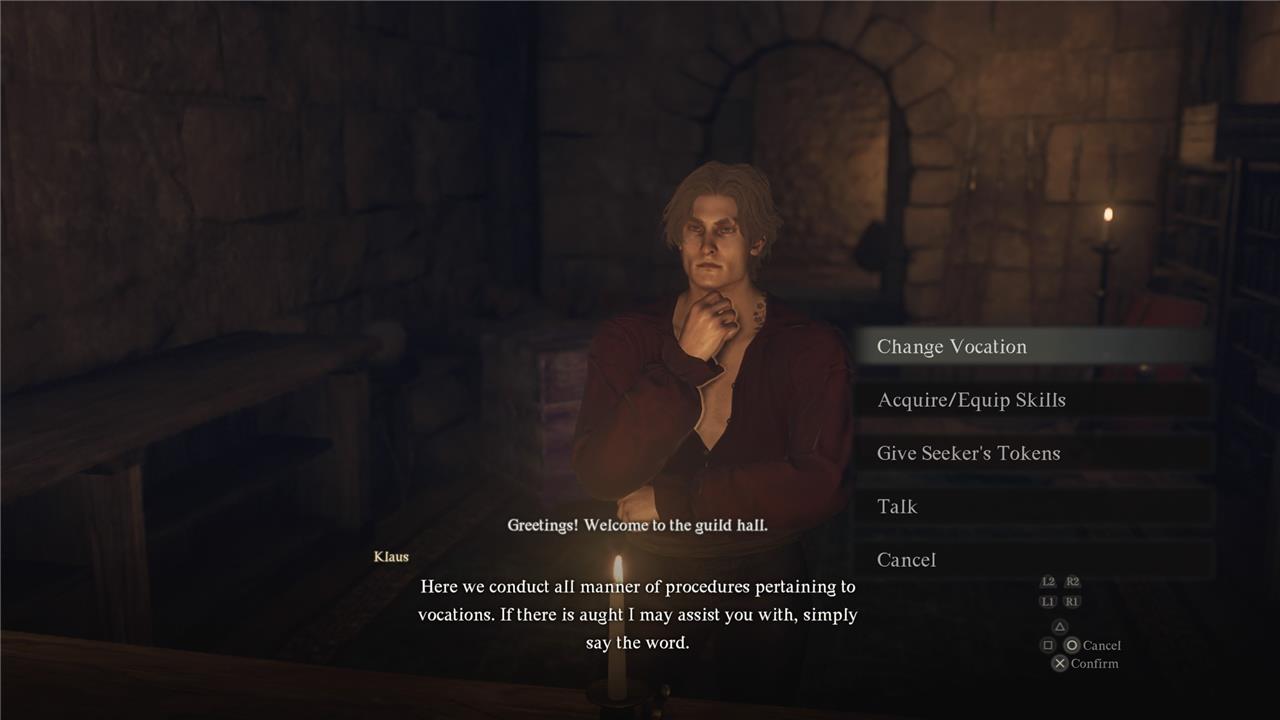 If you’re looking to pick up an advanced class for you or your pawn – like the Warrior or Sorcerer – you’ll first need to complete the “Vocation Frustration” quest, which you also get by talking to Klaus. Note, however, that your pawn can’t become the Mystic Spearhand, Magick Archer, Trickster, or Warfarer vocations.