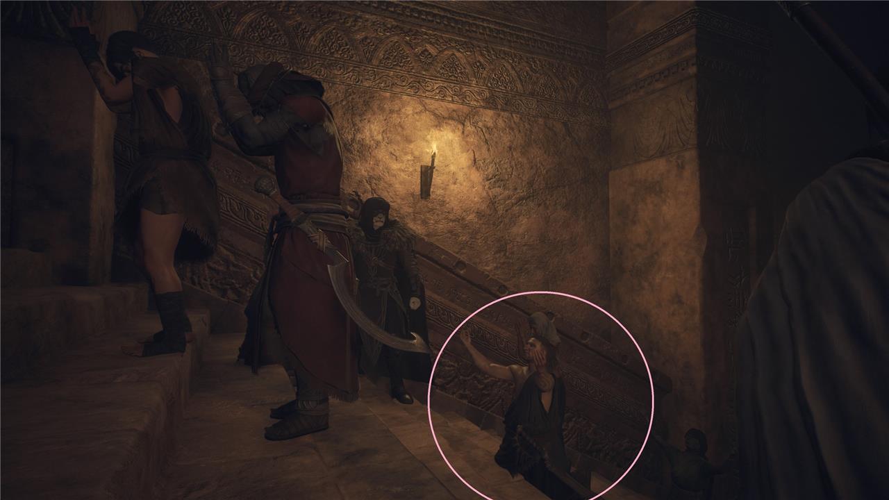 To find the assassin in the “Shadowed Prayers” quest in Dragon’s Dogma 2, you first need to return to the Flamebearer Palace in the morning during the ritual. Listen carefully to the clues given by Menella, who will provide you with a Bandit Bill of Arrest describing the assassin: he wears his hair tied back and has a wounded right arm. During the prayer, approach the group of devotees on the stairs and identify the man matching this description. Once you spot him-typically a man with scars on his arm and tied-back hair-use the grab command to apprehend him before he can attack Empress Nadinia. Successfully capturing the correct individual completes the quest segment and prevents the assassination.