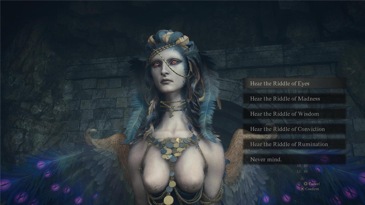 Other riddles, such as the Riddle of Eyes, are straightforward, while some later riddles involve tedious fetch quests or sacrifices that some players find annoying rather than challenging. However, the Riddle of Rumination and the Riddle of Wisdom stand out for their difficulty due to their reliance on player knowledge, memory, and specific game mechanics rather than simple puzzle-solving.