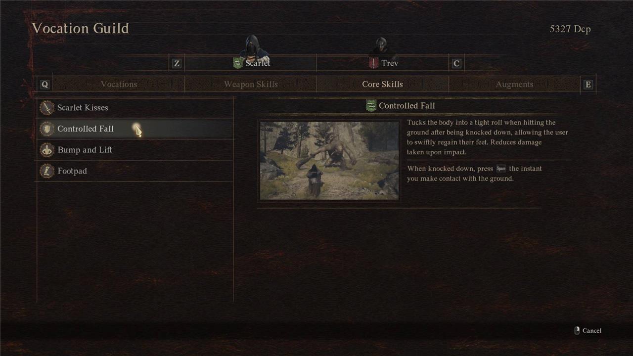 There are four core skills for the Thief, one of which is an absolute necessity and should come pre-unlocked as soon as you get your hands on the vocation: Scarlet Kisses. This is your basic attack, but it allows you to deal lots of reliable damage in quick succession. Controlled Fall is also very useful when you get knocked over, if you can react quick enough.