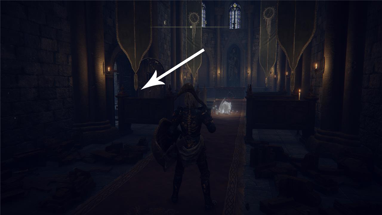 Beware that a spectral knight will appear at the top of the staircase; if you don’t want to fight him, you can simply dash past him, enter the building, and activate the Site of Grace on your left.