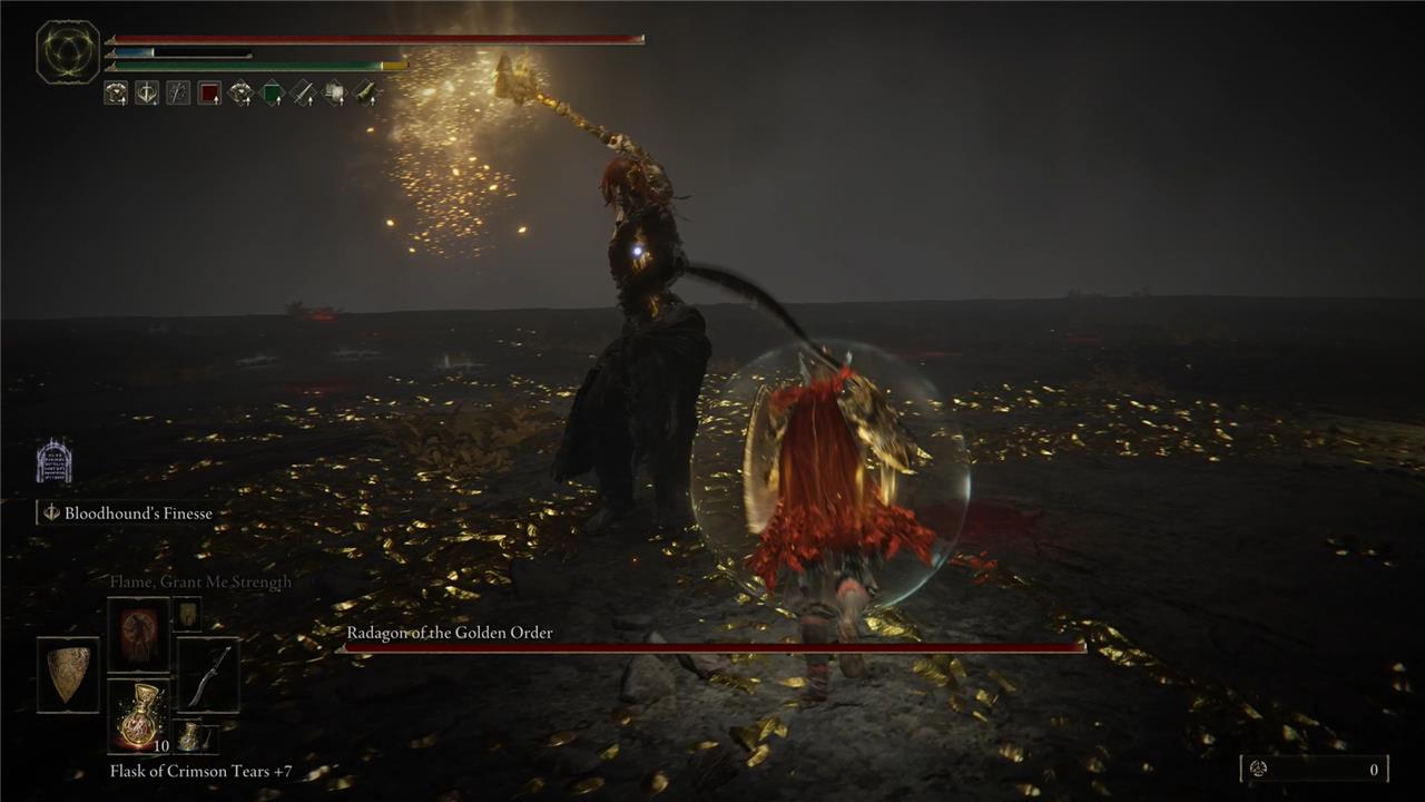 Radagon has a relatively low health pool for a final boss phase. Stay on the offensive when he’s open, but don’t get greedy-always prioritize survival over extra hits.